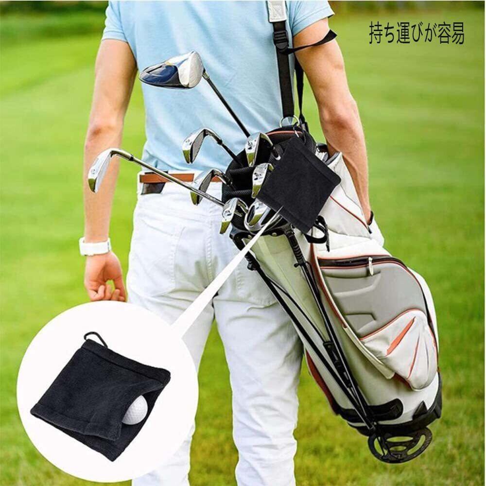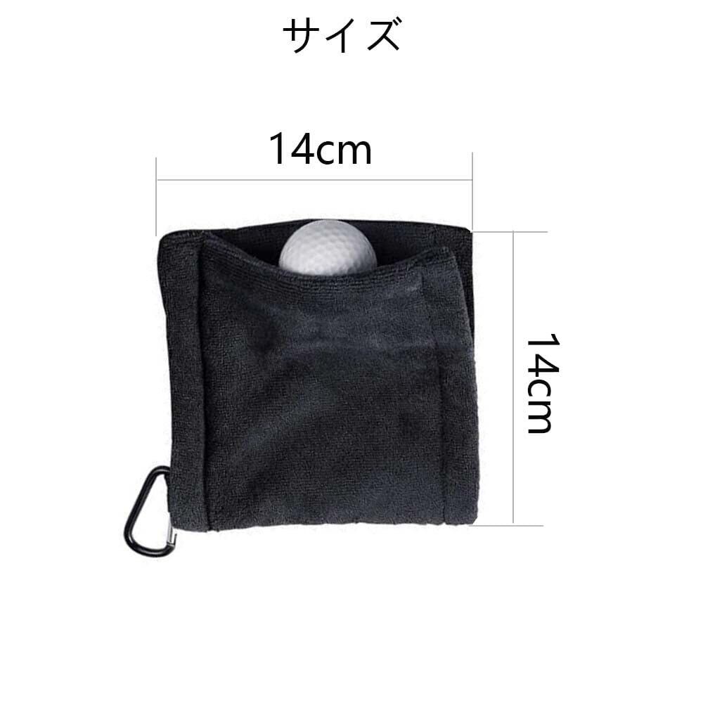 MOCOXYKLXY ゴルフ タオル ゴルフボールクリーナー ゴルフ用清潔具 カラビナと 便利 防水 キーホルダーバックル 14*14cm(ブラック)ゴルフボールクリーニングタオル