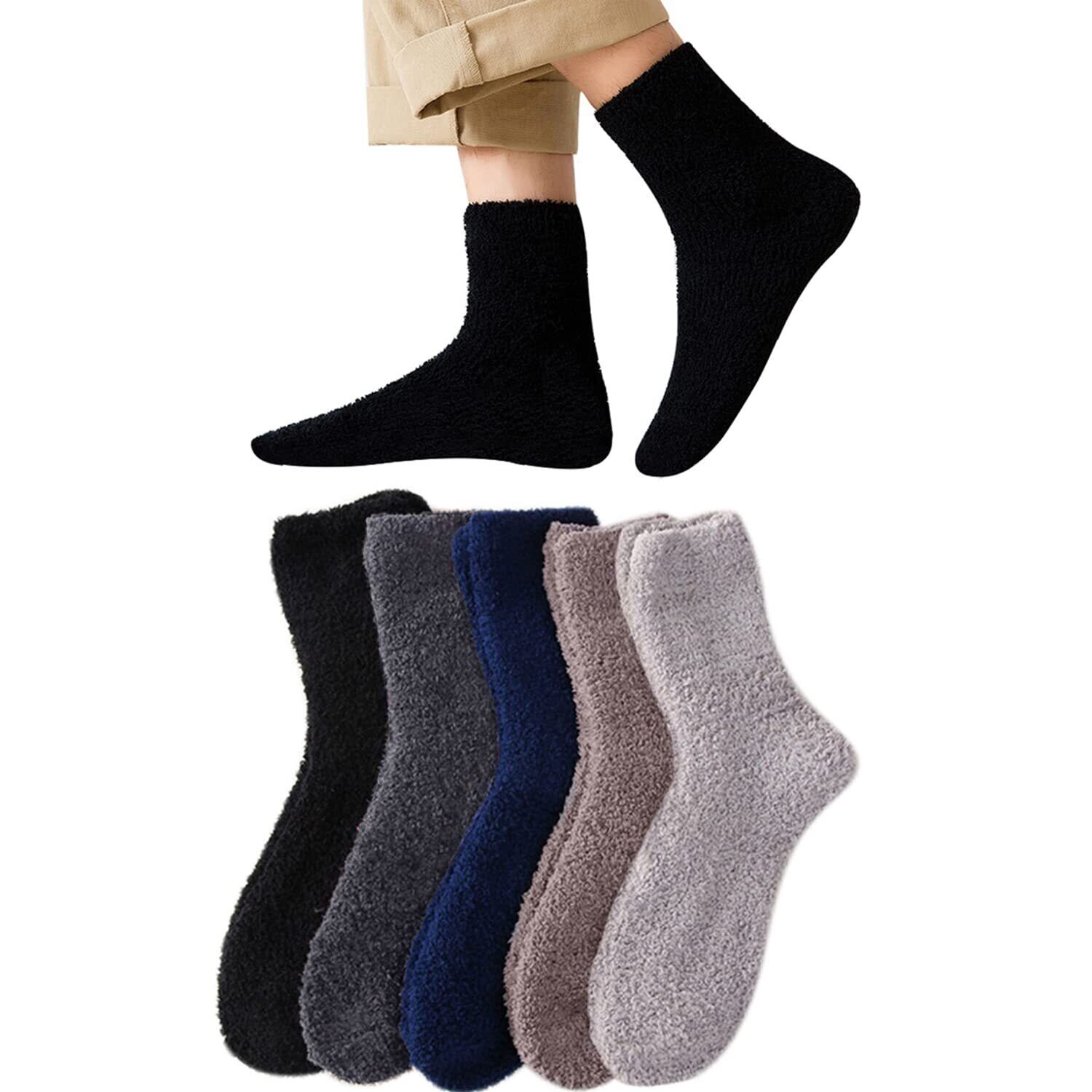 [Yazon] もこもこ靴下 メンズ 冬 ルームソックス 厚手 暖かい靴下 男性 防寒くつした メンズ 冬用 おしゃれ 室内 保温 冬用靴下 部屋 睡眠 ポカポカ モコモコソックス 24-27cm 5足セット