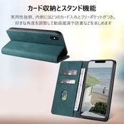 【カード収納とスタンド機能】iphonexs 手帳形ケース動画視聴に便利なスタンド機能が付き、横向いて斜めに立てて、お好きな角度を調整でき、両手が解放され、お気軽に読書やビデオの観賞を楽しむことができます。内側には2つのカード入れとフリーポケットがつき、名刺や定期券の収納に優れているiphonex ケース 手帳です。