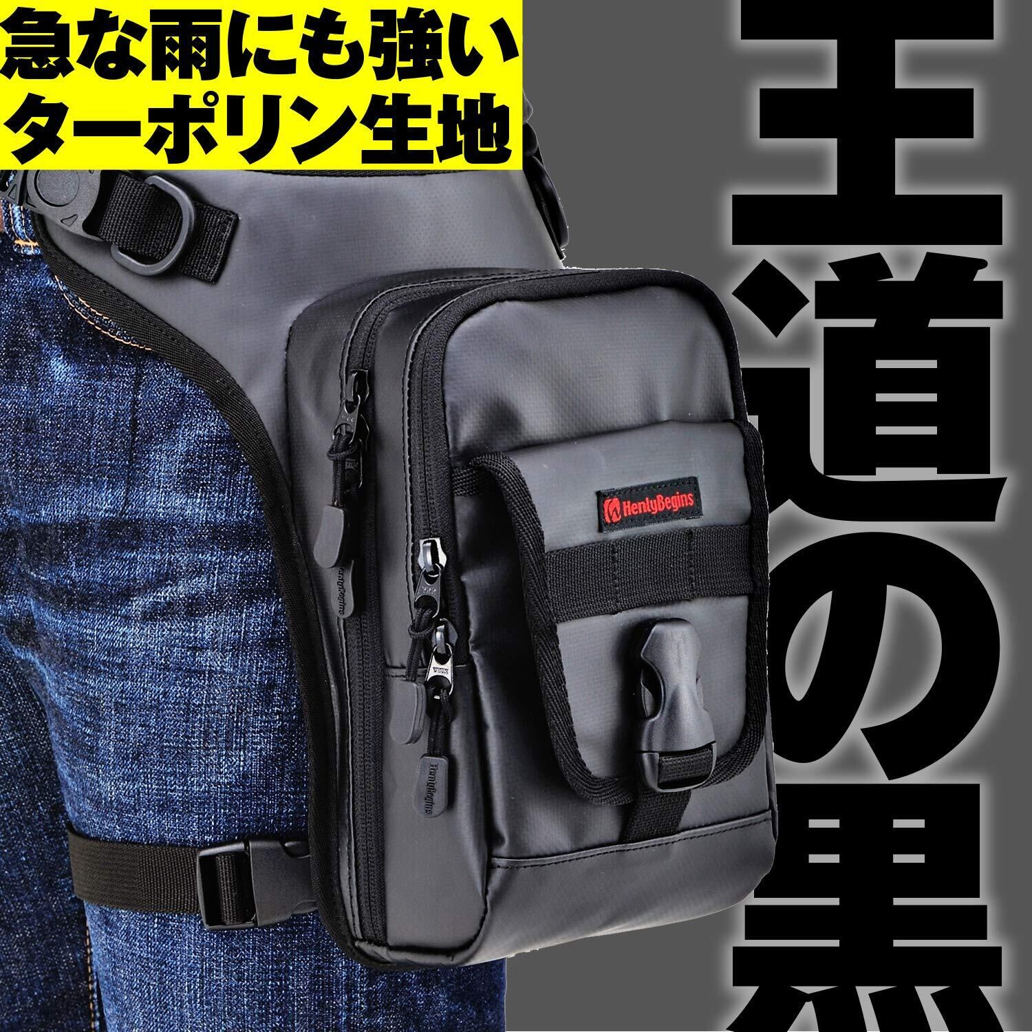 ヘンリービギンズ(Henly Begins) デイトナ バイク用 レッグバッグ 1.5L ターポリン ペットボトル収納可 3室構造 ホルスターバッグ3 DH-730 ブラック 98660