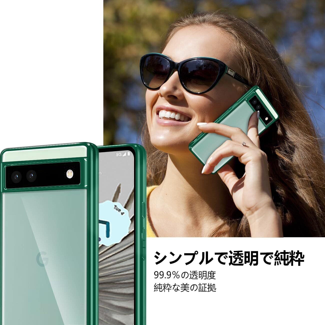Google pixel 6A ケース クリア メッキ加工 耐衝撃 薄型 カバー グーグル ピクセル 6A 透明な背面 ケース 米軍MIL規格 SGS認証 TPU 透明な背面 スマホケース 韩国 人気 ランキング おしゃれ 衝撃吸収 ソフトケース 指紋防止 滑り止め 黄変防止 ストラップホール付き カメラ保護 携帯ケース pixel 6A case (グリーン)