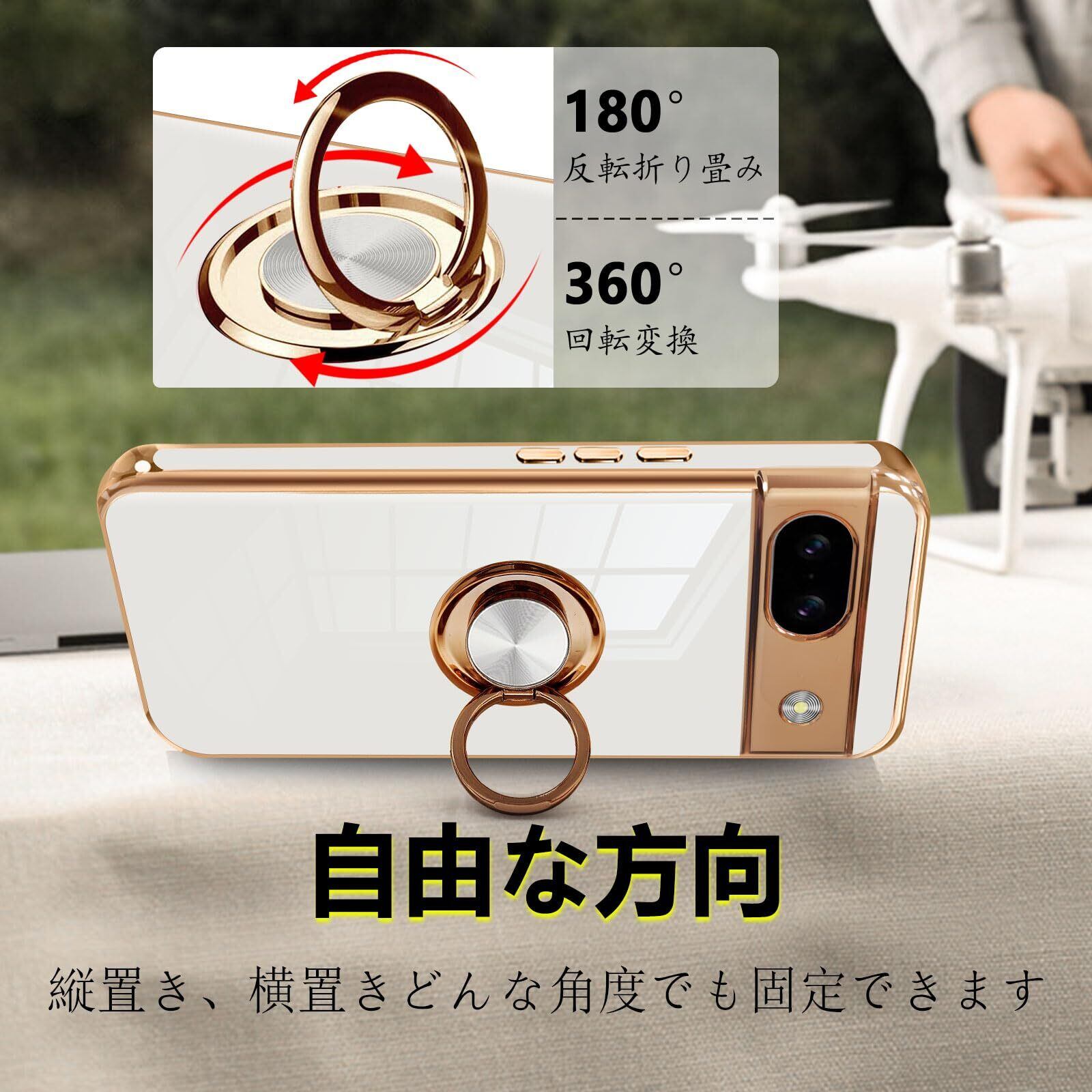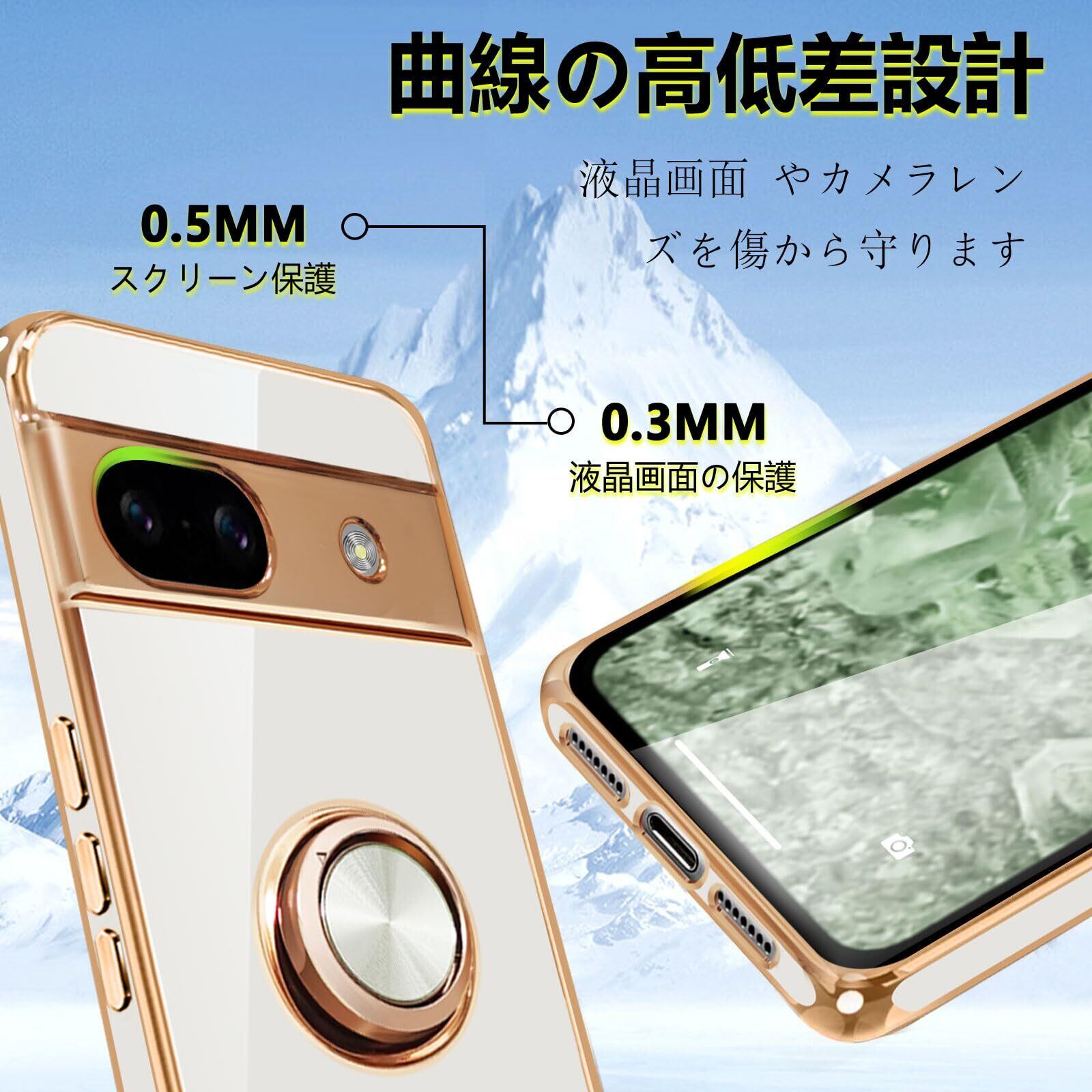 MiaoKeDa Google Pixel 8A ケース リング 衝撃吸収 車載ホルダー ストラップホール付き TPU メッキ加工 薄型 白