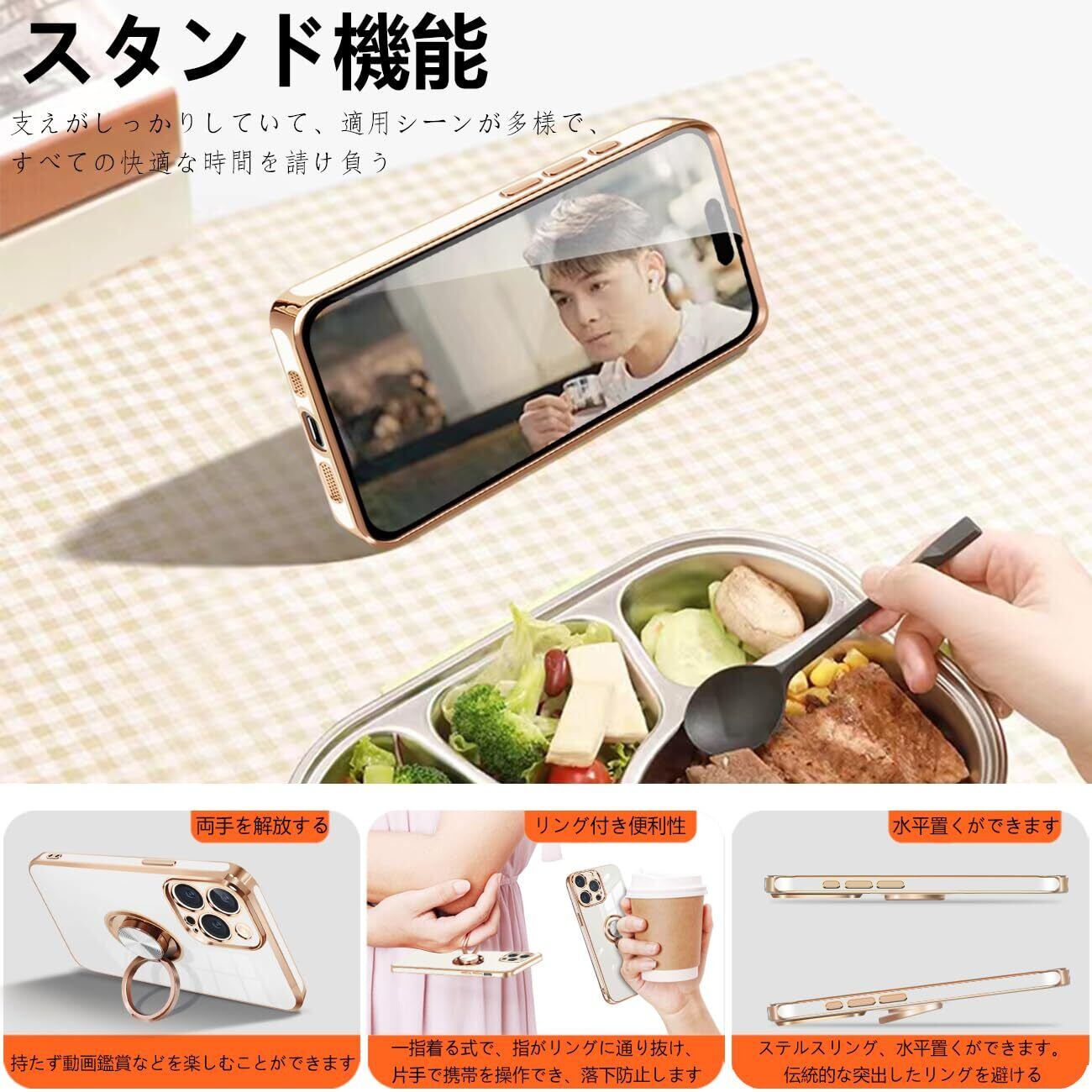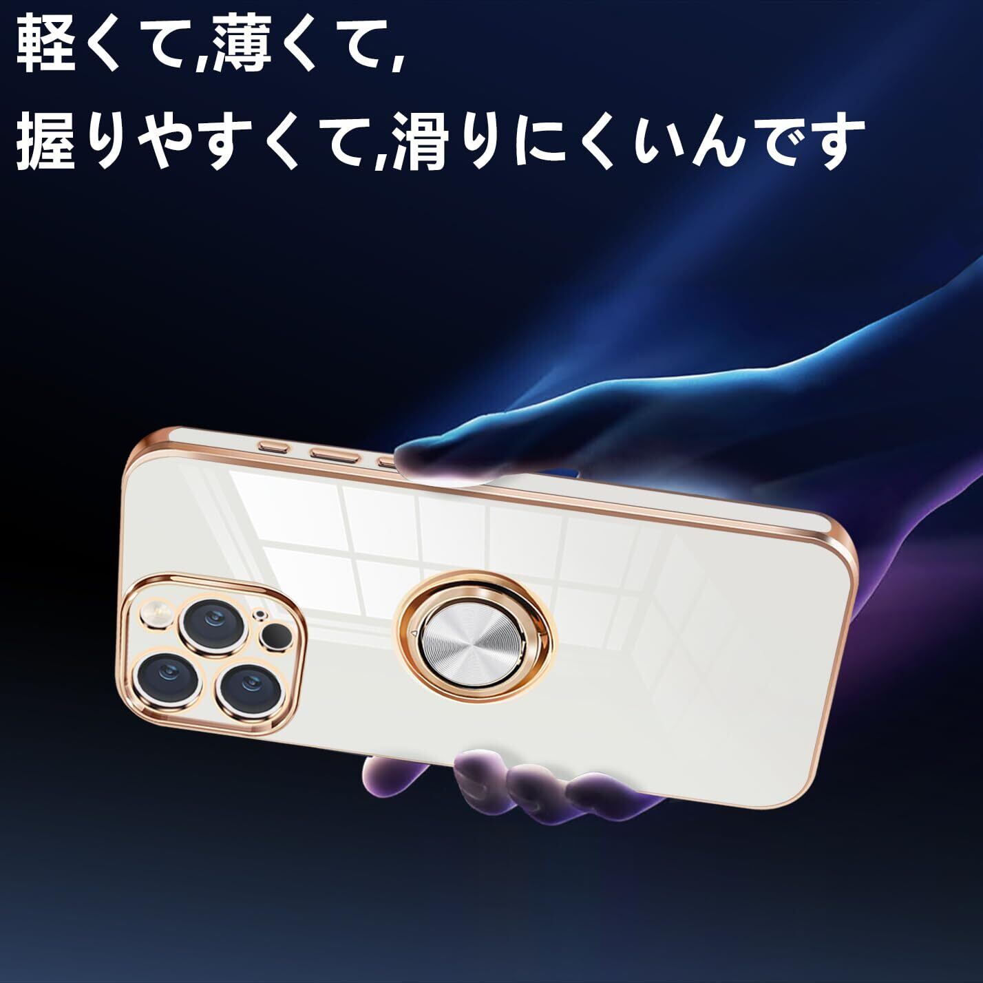 iPhone15 Pro Max 用 ケース リング付き アイフォン15pro max カバー スマホケース リング 耐衝撃 携帯カバー 薄型 TPU シリコン スタンド機能付き 360回転車載ホルダー(ホワイト)