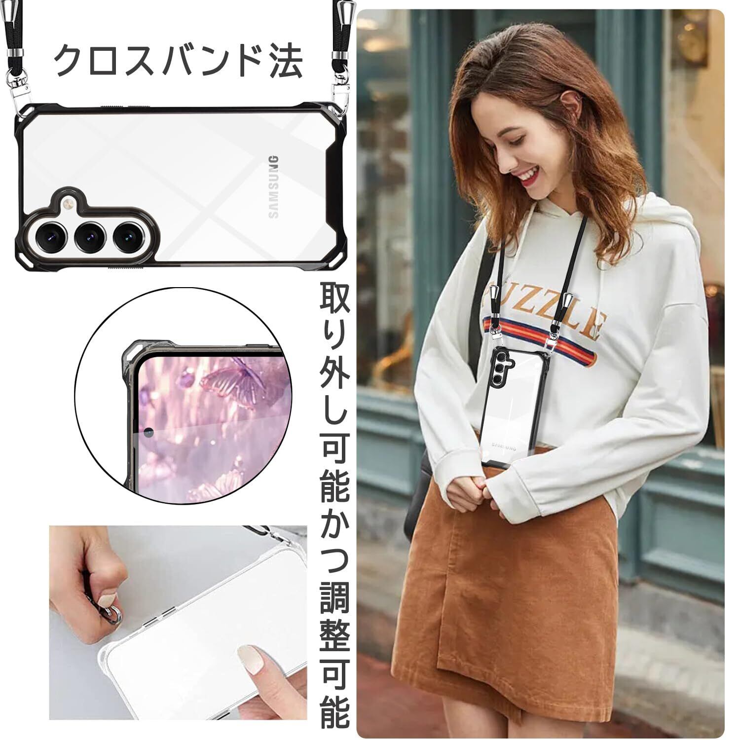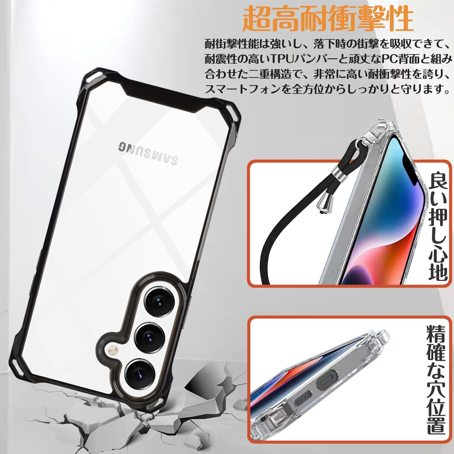 Galaxy A55 5G ケース クリア PC ショルダー 軽量 耐衝撃 カバー ギャラクシーA55 5G SC-53E SCG27 ケース 透明 薄型 軽量 PC背面 + TPUバンパー 二層構造 携帯ケース 首掛け 肩掛け 斜めかけ 縄掛けケース ストラップ付き 1.5M 取り外し可能 縦/横 2WAY 調節可能な 全面保護 落下防止 衝撃吸収 ワイヤレス充電対応 (ブラック)