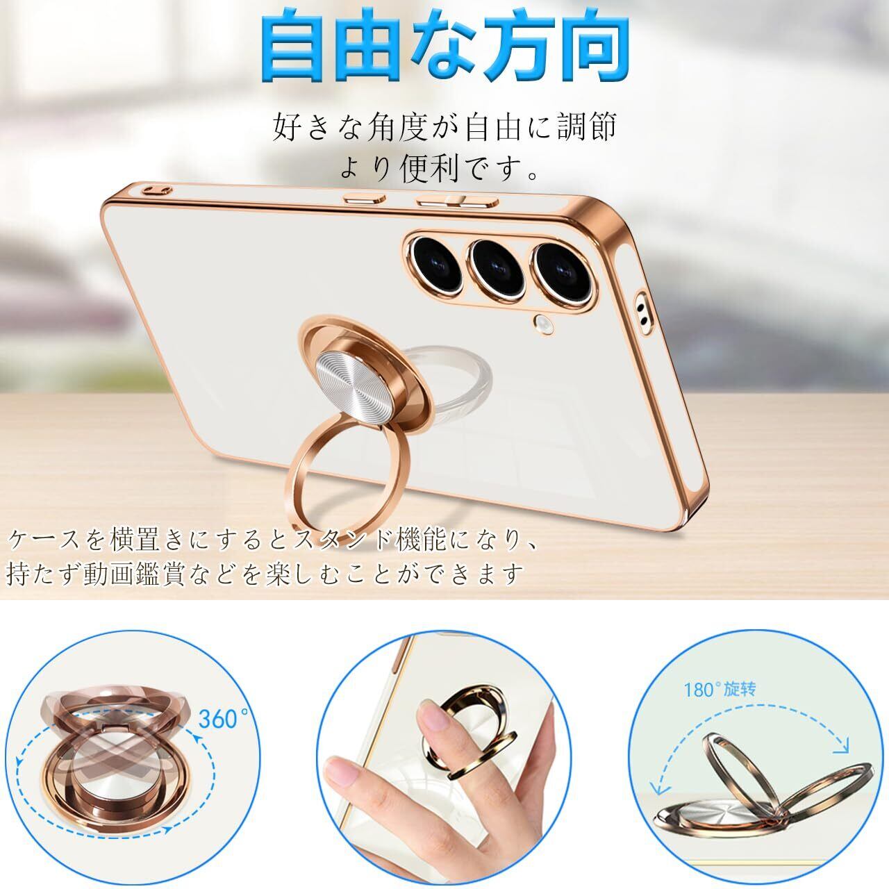 Galaxy S24 ケース リング SC-51E SCG25 ギャラクシーs24 スマホケース リング付き 耐衝撃 TPU 携帯カバー シリコン スタンド機能付き 360回転車載ホルダー (ホワイト)