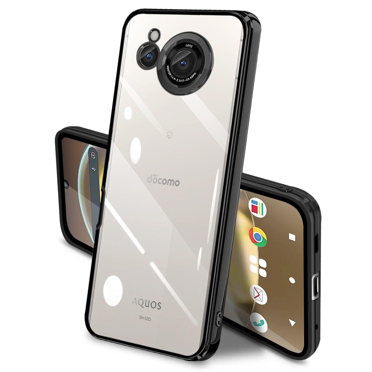AQUOS R8 ケース クリア 全面保護 SH-52D カバー Sharp シャープ アクオスr8 ソフト 透明 スマホケース TPU 薄型 耐衝撃 軽量 メッキ加工 携帯カバー ストラップホール付き 落下防止 擦り傷防止(ブラック)