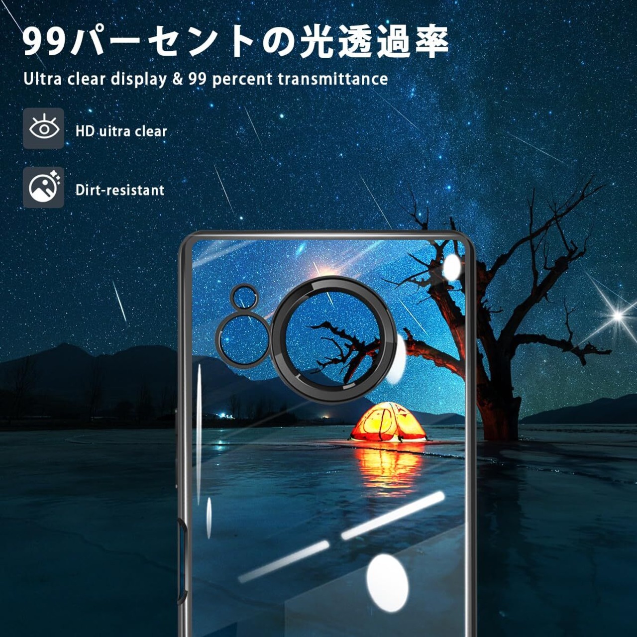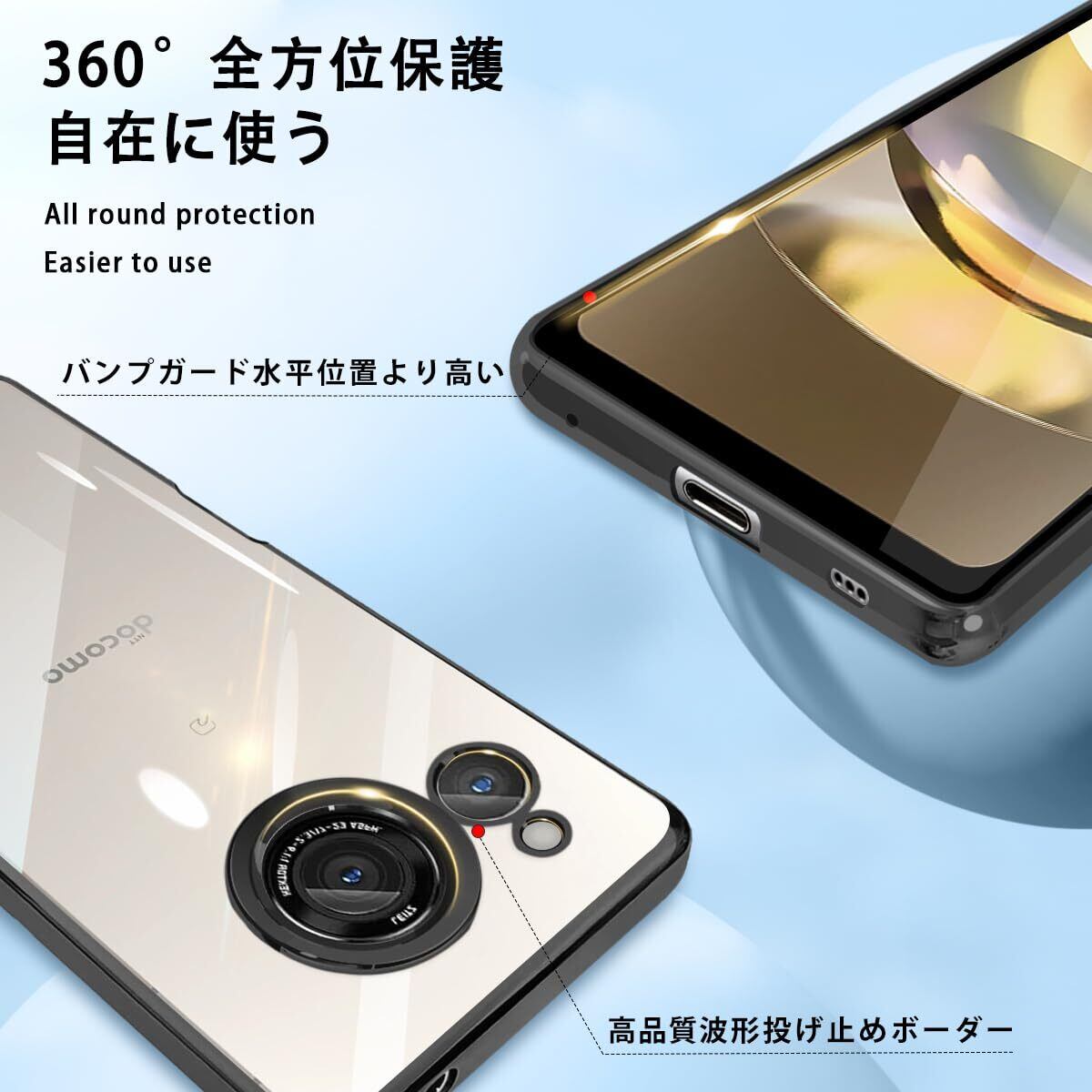【耐衝撃&360°全面保護】高耐衝撃構造で作られ、熟練の技術に裏付けられたクッション加工、落下衝撃を全方位吸収し、期待に裏切らない頑丈さを持つ。四角を強化することで、落下や衝撃による損傷を軽減します、画面とカメラを保護するために上げられたベゼル。 カメラレンズの周りに段差をつけて擦り傷を防ぎます.スマホへの傷つけを防止します.また、カバーの各コーナーを強化し、衝撃を最小限に抑えます。また背面のカメラが地面に触れないようにカメラより高く設計されており、大切なカメラレンズを傷から守り、机に置いて画面を操作しても、がたつきがありません。