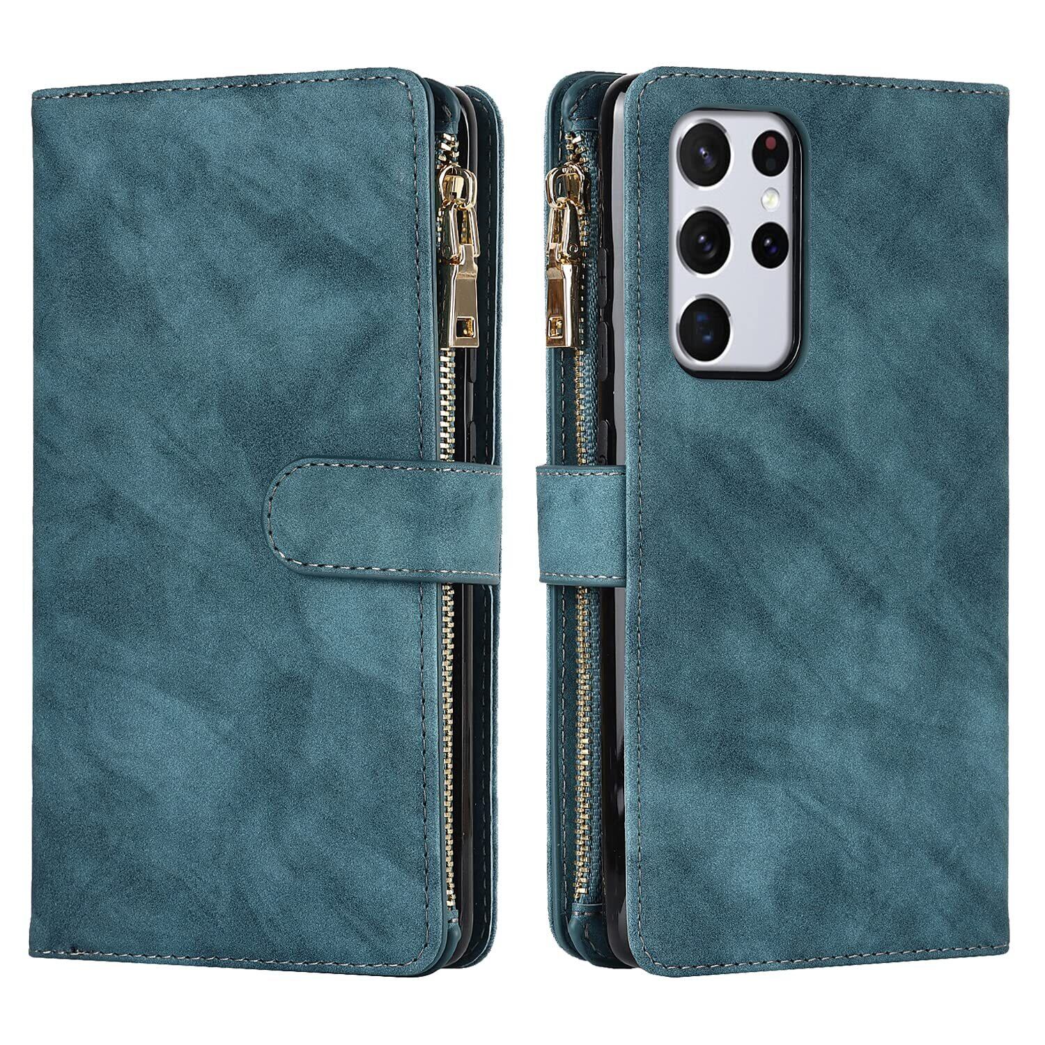for Galaxy S21 Ultra 5G ケース for Samsung ギャラクシー S21 Ultra ケース SC-52B docomo 縄掛けケース 手帳型 財布型 ICカード コインポケット ストラップ付き カード 収納 小銭入れ ファスナーポケット付き PUレザー 6色 ブルー