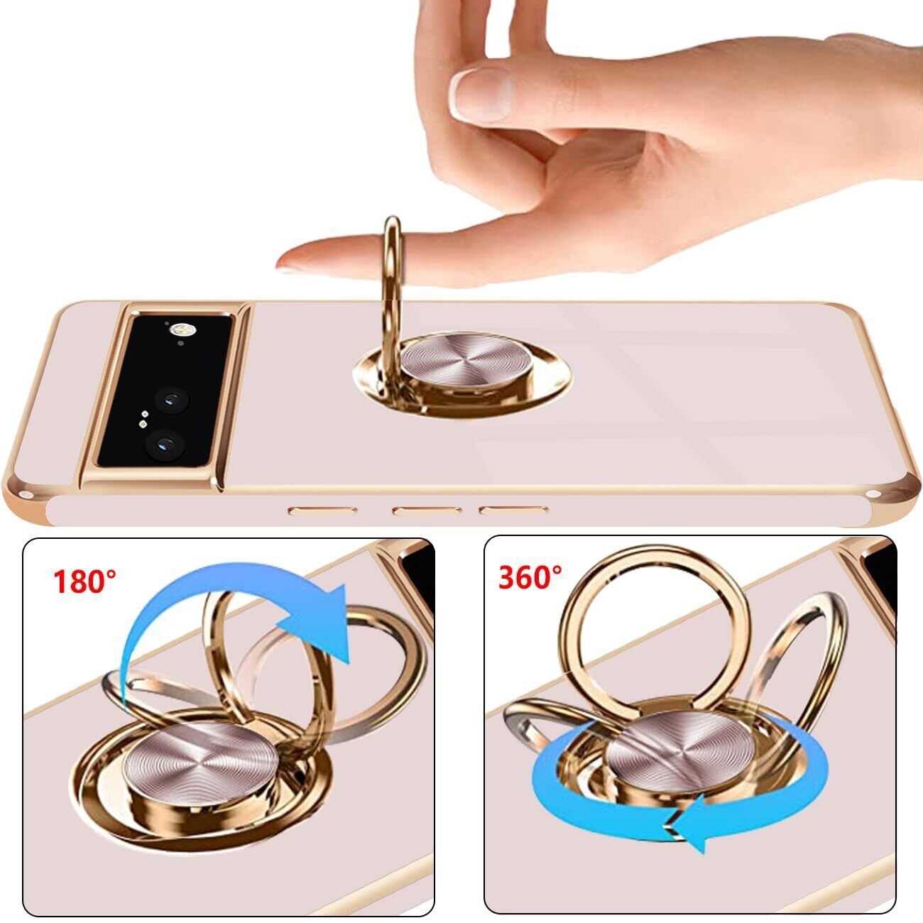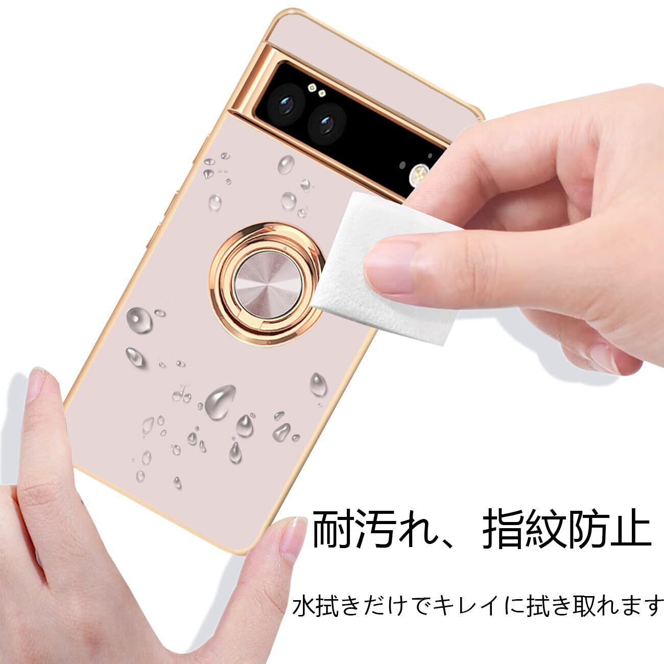 Google Pixel6 ケース リング付き 耐衝撃 ピクセル6 スタンド機能 TPU リング 薄型 360回転 車載ホルダー 軽量 スマホケース 携帯カバー 指紋防止 一体型 (ピンク)