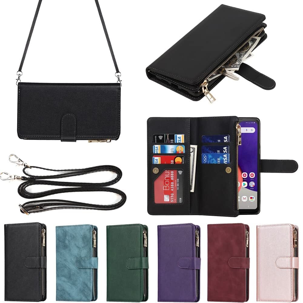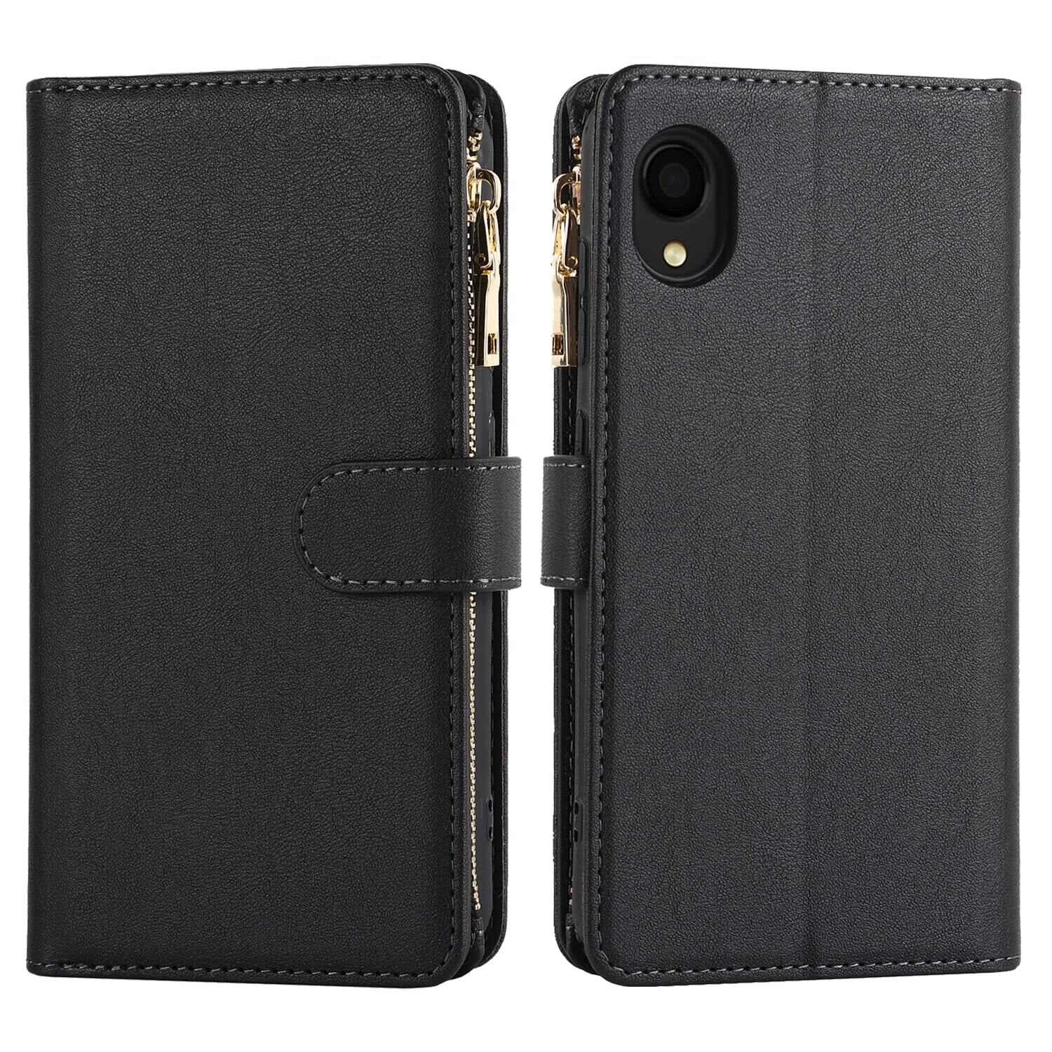 Eastwave for Galaxy A22 5G SC-56B ケース ギャラクシー a22 5g カバー sc-56b 縄掛けケース 手帳型 財布型 ICカード コインポケット ストラップ付き カード 収納 小銭入れ ファスナーポケット付き PUレザー 6色ブラック