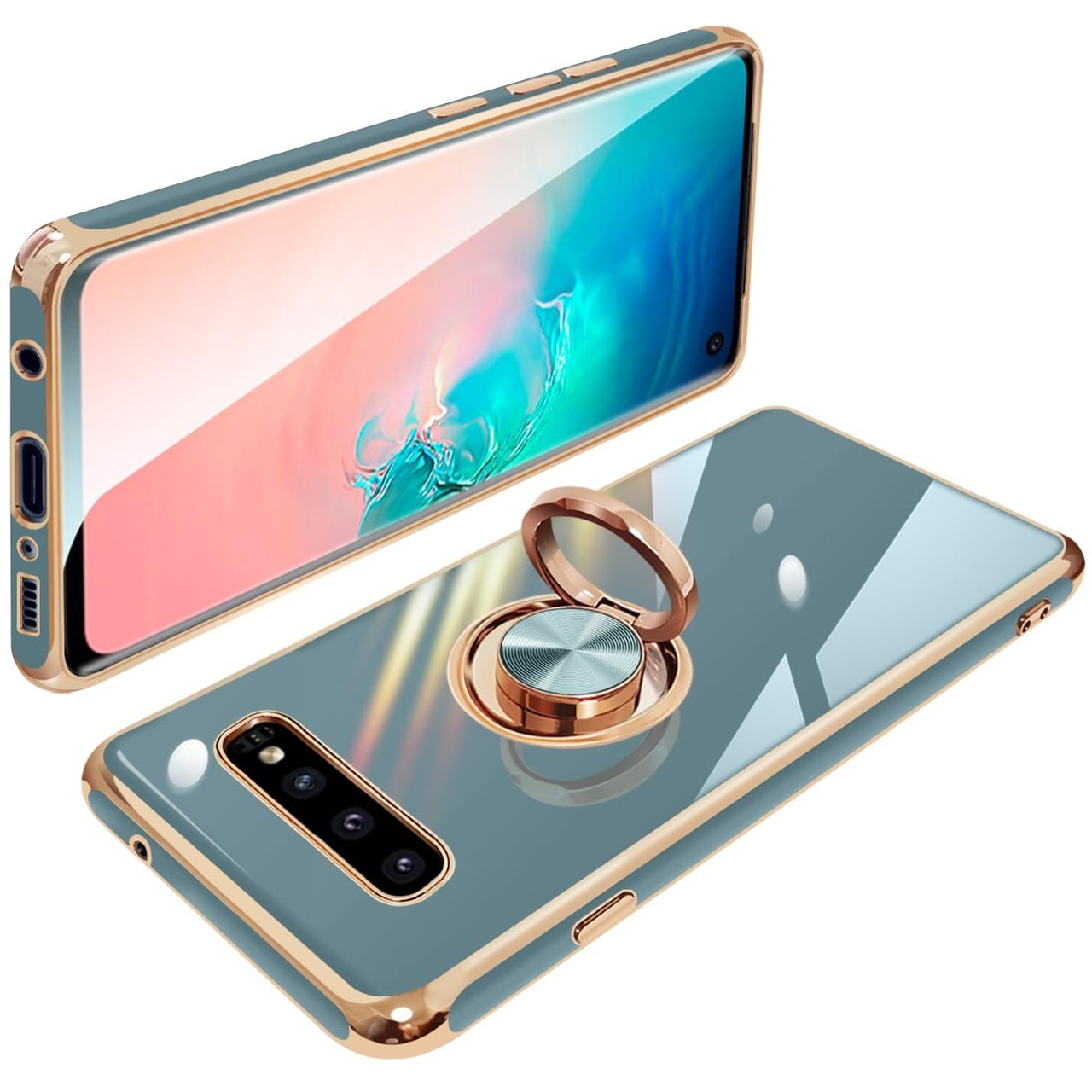 Galaxy S10 ケース リング付き SC-03L SCV41 ギャラクシーS10 リング カバー 耐衝撃 TPU 携帯カバー シリコン スタンド機能付き 360回転車載ホルダー(グレーブルー)