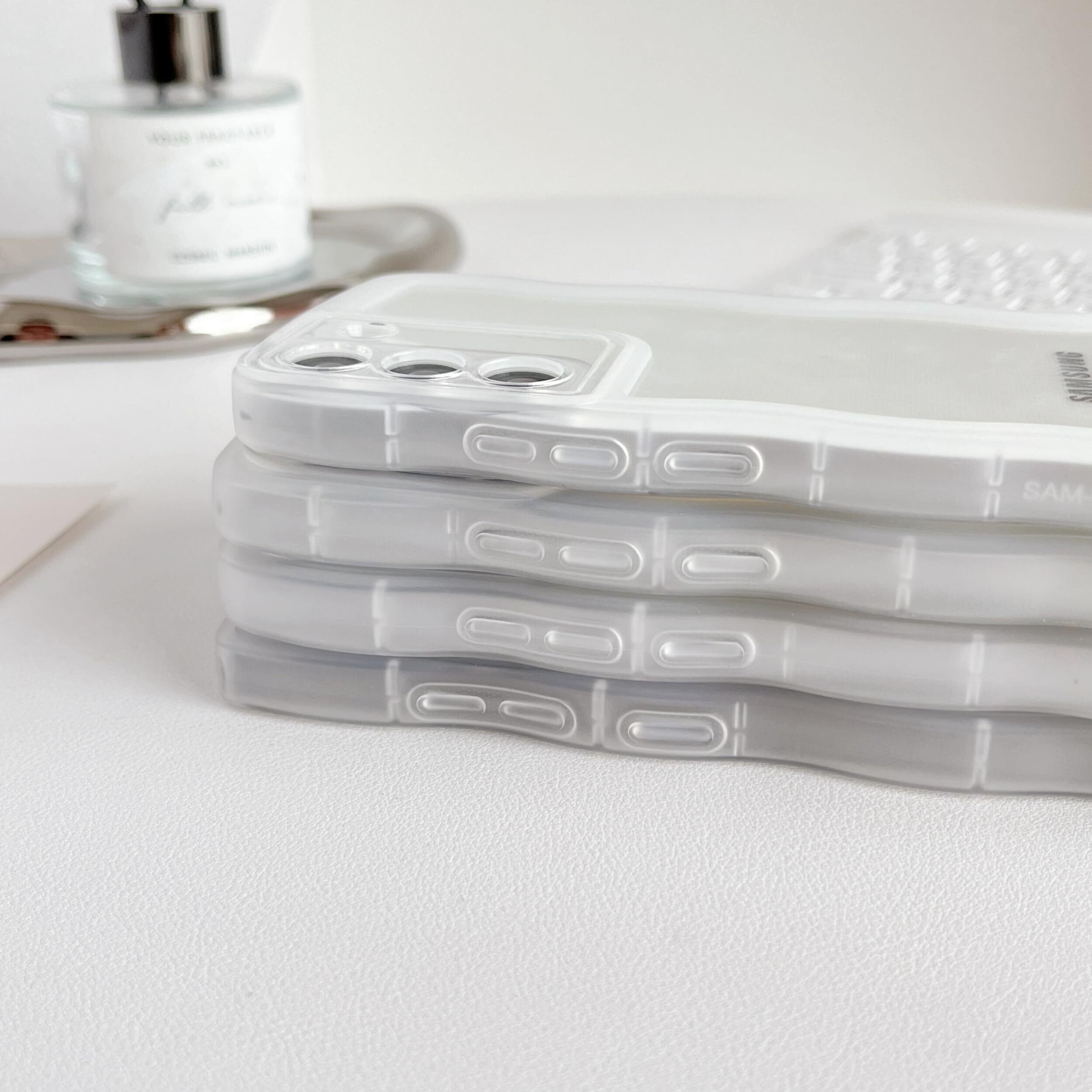 ZTOFERA Samsung Galaxy A55 5G ケース用、クリア透明可愛いうねうね波状フレームおしゃれデザイン、ソフトTPU滑り止め傷防止耐衝撃性の電話カバーSamsung A55 ケース用、白い