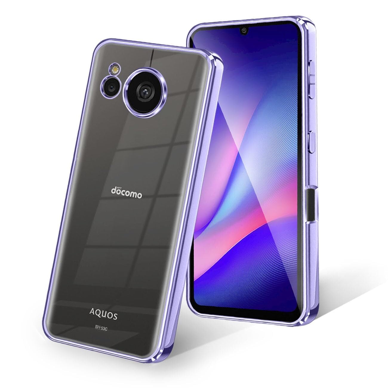 AQUOS Sense7 ケース クリア アクオス Sense7 SH-53C SHG10 SH-M24 カバー 耐衝撃 メッキ加工 スマホケース ストラップホール付き 軽量 薄型 透明 持ちやすい TPU素材 パープル