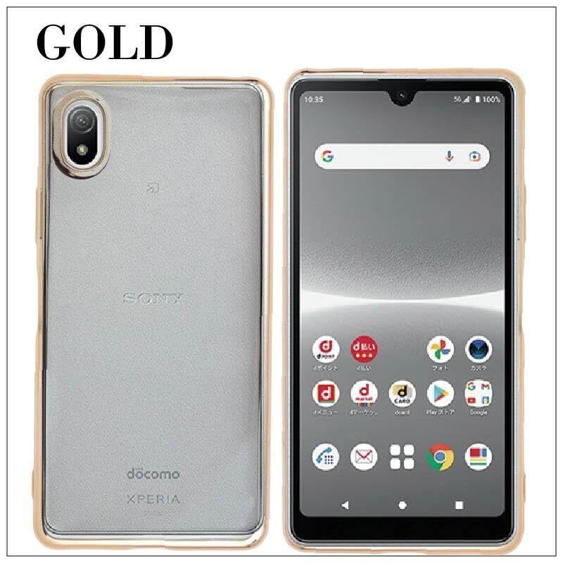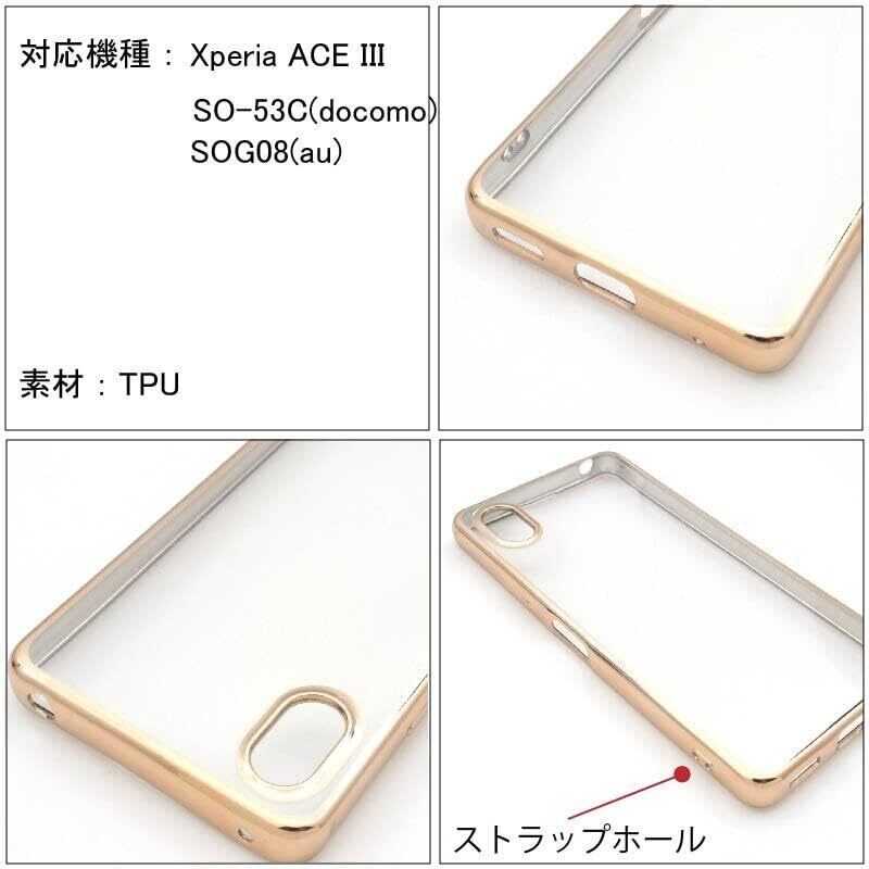 Xperia ACE III ケース クリア SO-53C SOG08 エクスペリア エース カバー スマホケース 透明 耐衝撃 TPU 薄型 軽量 メッキ加工 ソフトケース ストラップホール付き 落下防止 擦り傷防止 レンズ保護 ゴールド