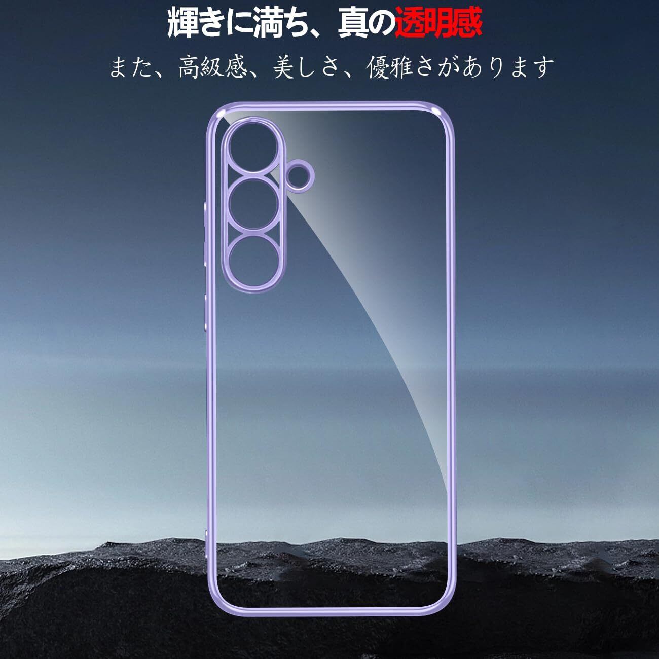 Samsung Galaxy S23FE ケース クリア 耐衝撃 薄型 軽量 SCG24 カバー ギャラクシーS23FE ケース 透明 TPU素材 韓国 ファッション スマホケース 衝撃吸収 メッキ加工 ソフトケース 黄変防止 耐久性 人気 ストラップホール付き サムスン ギャラクシー S23FE 携帯ケース 6.4インチ(パープル)
