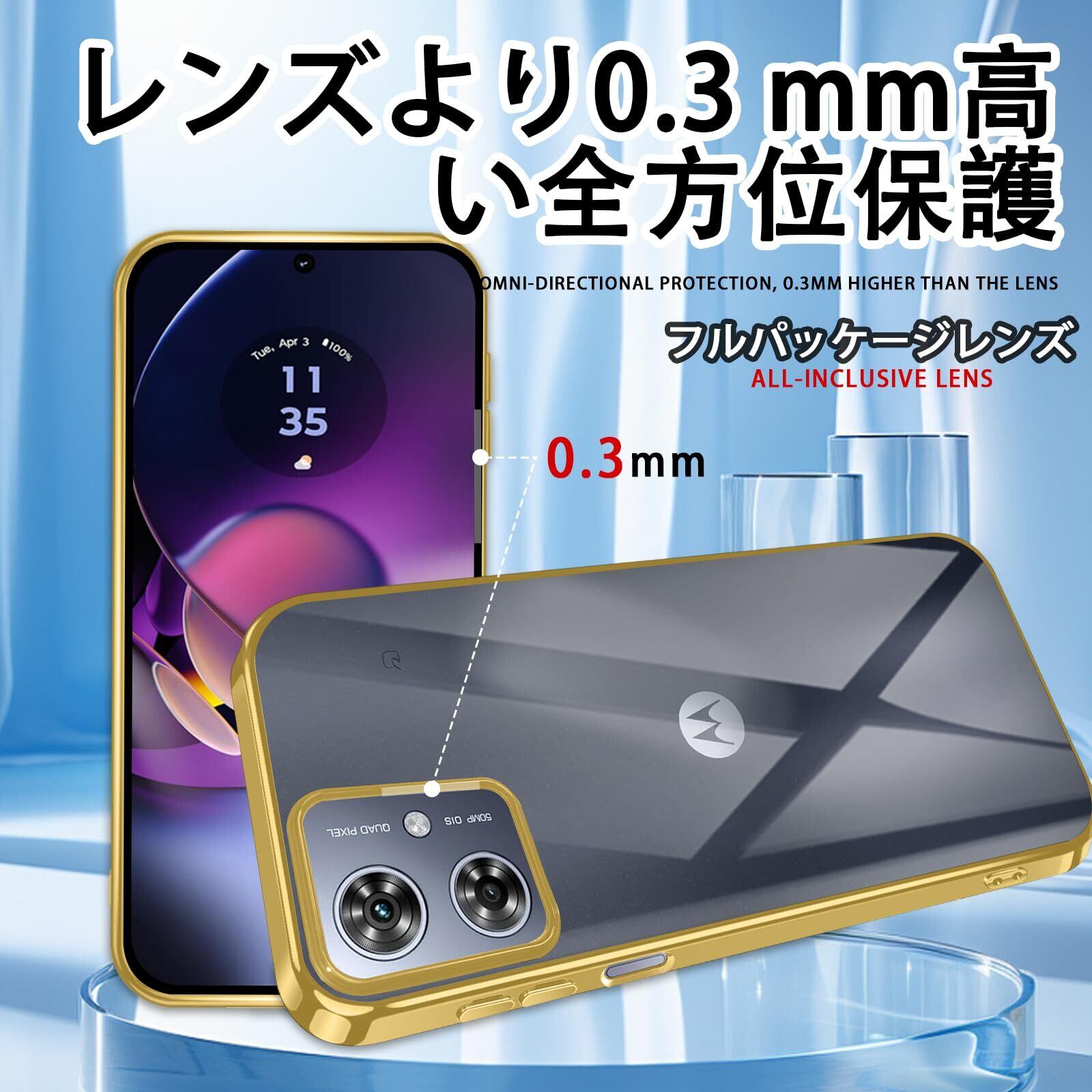 Tvoasovy Motorola G64 5G/G64Y ケース クリア カバー モト モトローラ moto g64y 5g 透明 スマホケース TPU 薄型 耐衝撃 軽量 ストラップホール付き 防止擦伤 滑り止め 落下防止(ゴールド)