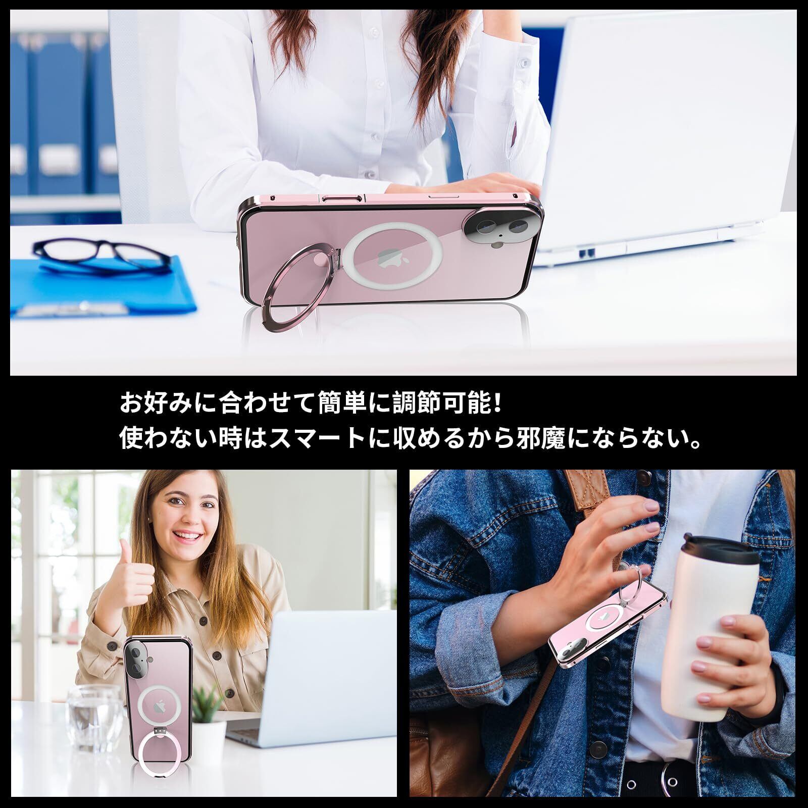【チタニウム専用色&一体型レンズ&隠しスタンド】smhokesu iPhone 16 Plus 用ガラスカバー 両面ケース MagSafe対応 多機能隠しスタンド・縦横両対応 360°全面保護・強化ガラス リング付き 透明 一体型カメラレンズ保護 メッキバンパー 耐衝撃 ワイヤレス充電対応 アルミ合金バンパース アイホン16プラス 金属 ケース 人気 6.7インチ クリア ピンク