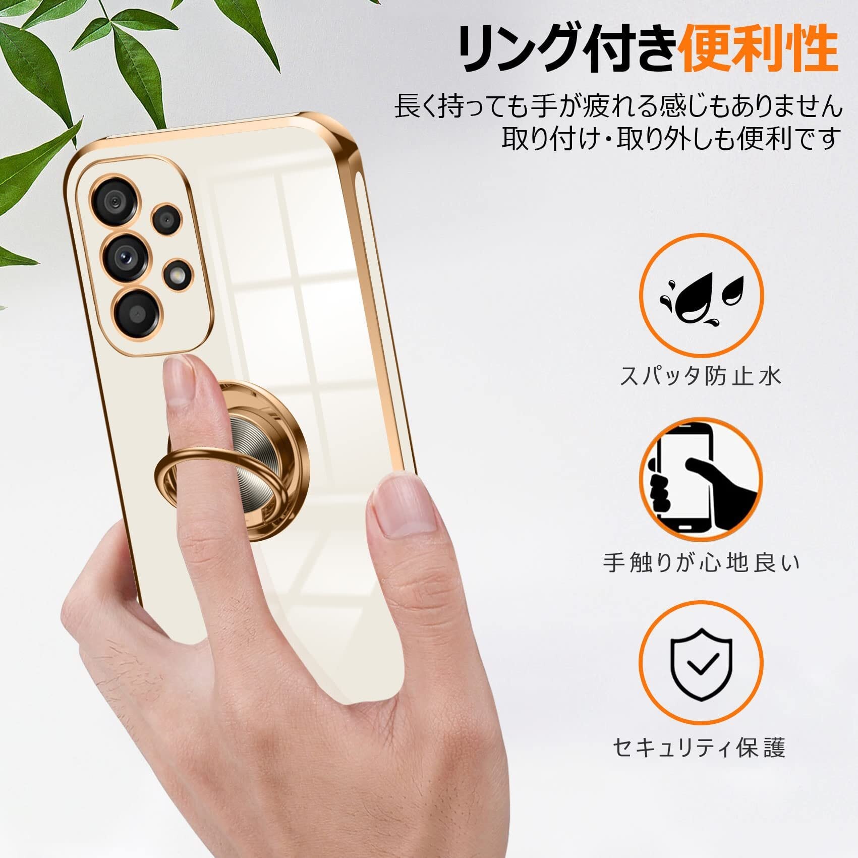 Galaxy A52 5G ケース リング SC-53B 耐衝撃 TPU ソフトケース 薄型 軽量 さらさら肌触り ストラップホール付き カバー サムスン ギャラクシー a52 5g ケース 米軍MIL規格取得 衝撃吸収 車載ホルダー対応 スタンド機能 携帯カバー 白 WY91-93