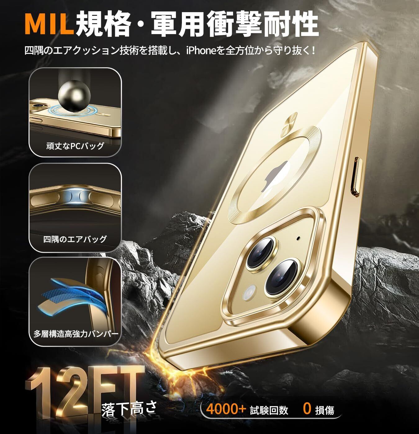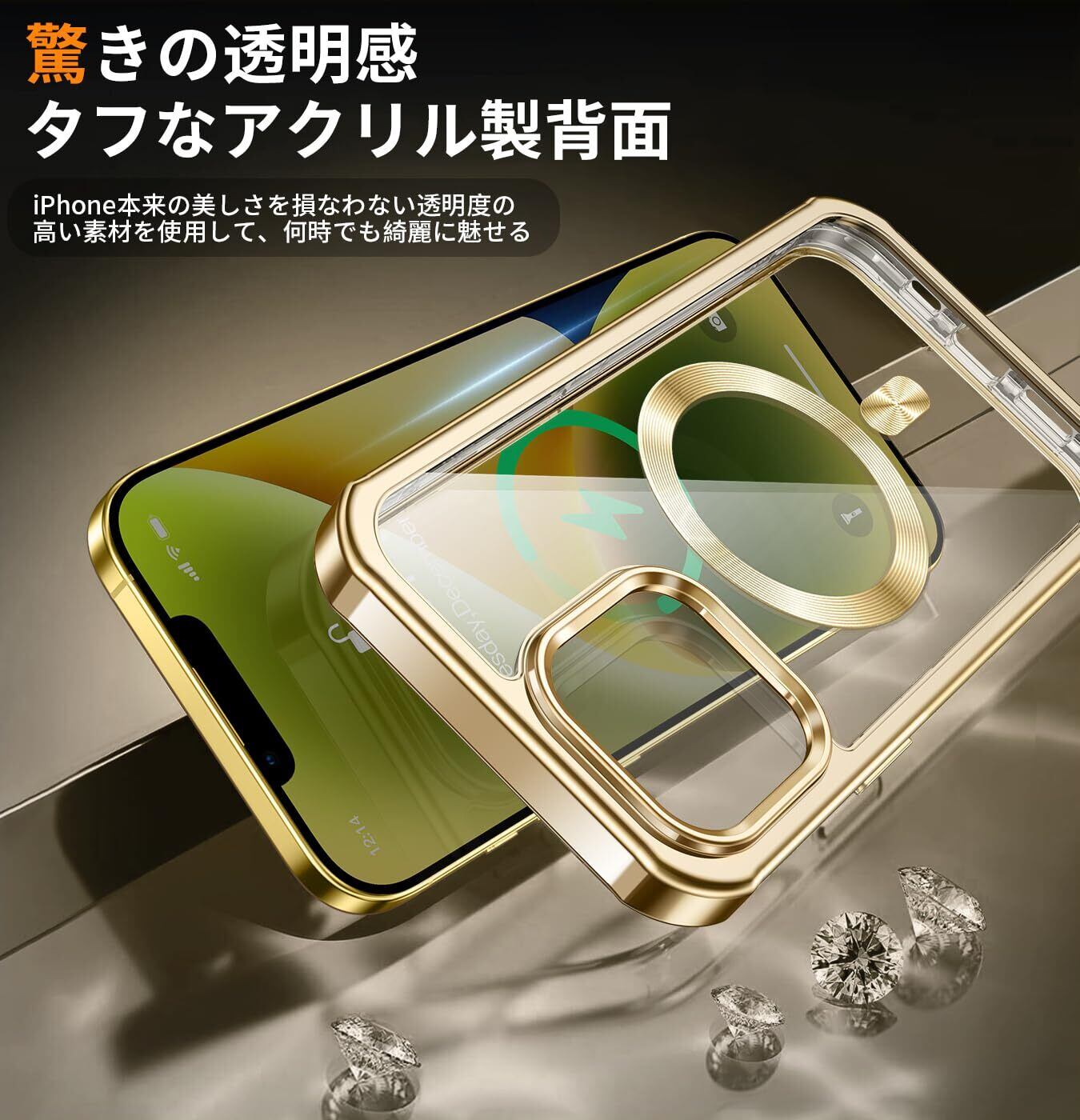 【両面保護ケース・MagSafe対応】FONKCASE iPhone14 用 ケース ストラップホール付き【本体の色・CDリング】メッキバンパーケース クリア PC背面 黄変防止 アイホン14ケース 全面保護 カバー 耐衝撃 タッチ感度良い ワイヤレス充電対応 人気 アイフォン14 用 ケース 6.1インチ(ゴールド)