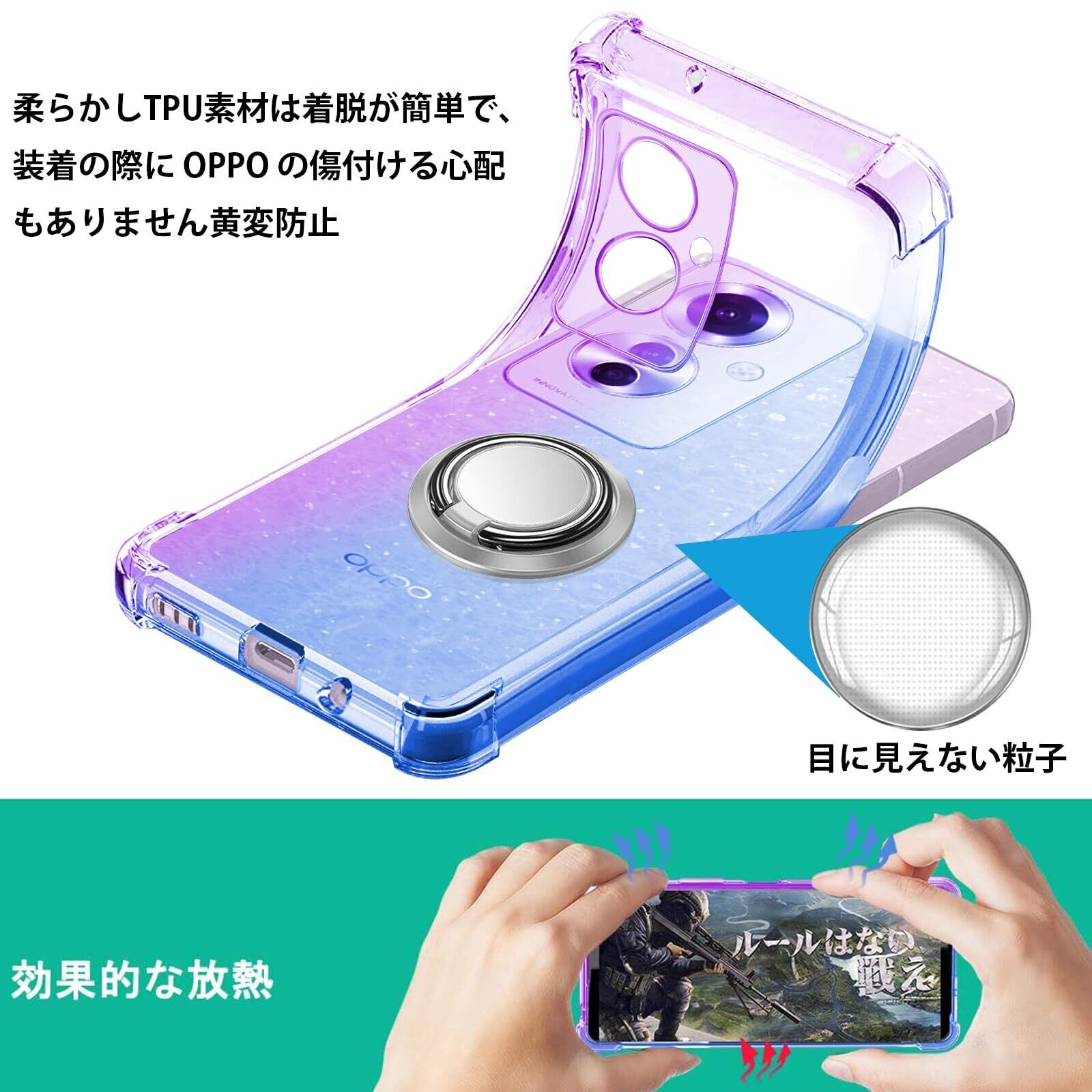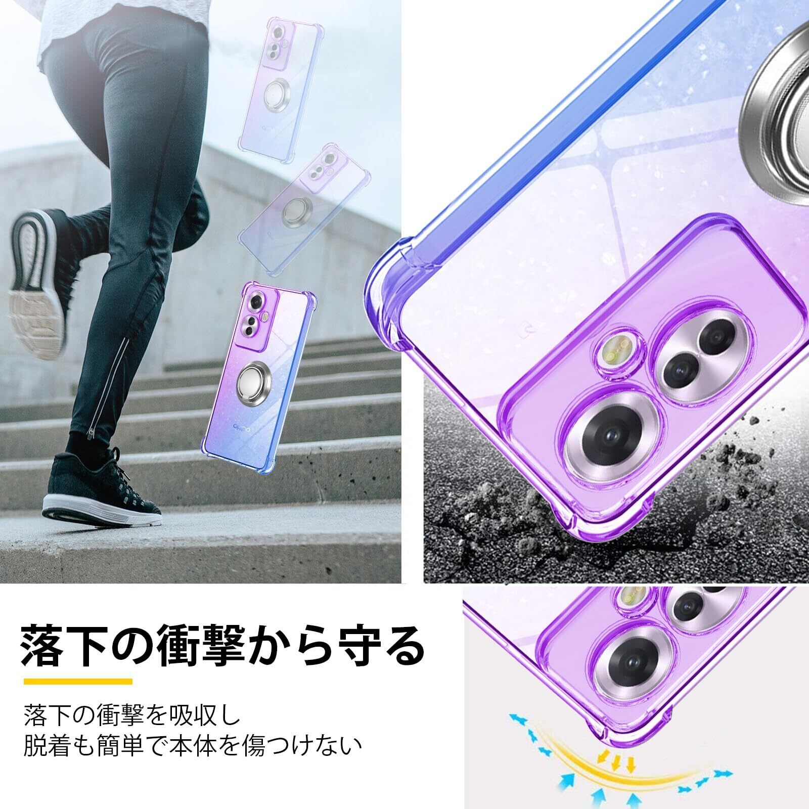OPPO Reno11 A 5G 用 ケース リング TPU 薄型 軽量シリコン グラデーション色 ケース 耐衝撃 指紋防止 車載ホルダー対応 防塵 一体型 人気 携帯カバー OPPO Reno 11A 対応 (パープルブルー)