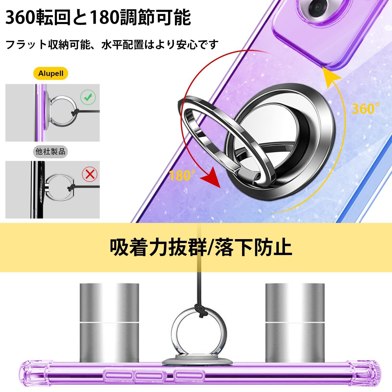 【360°回転】ブラケットは360°回転できます、垂直画面で小説を読むことができます、または、画面全体でビデオを見る。一指着る式で、指がリングに通り抜け、片手で携帯を操作でき、落下防止します。