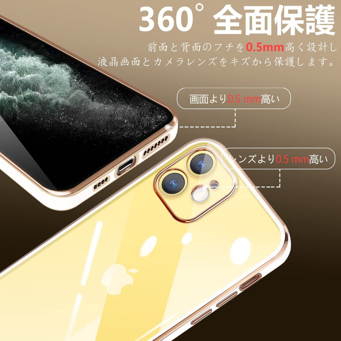 iPhone11 ケース クリア 透明 アイフォン11 カバー スマホケース 全面保護 耐衝撃 TPU メッキ加工 シリコン スリム 薄型 ストラップホール付き 落下防止(ホワイト)