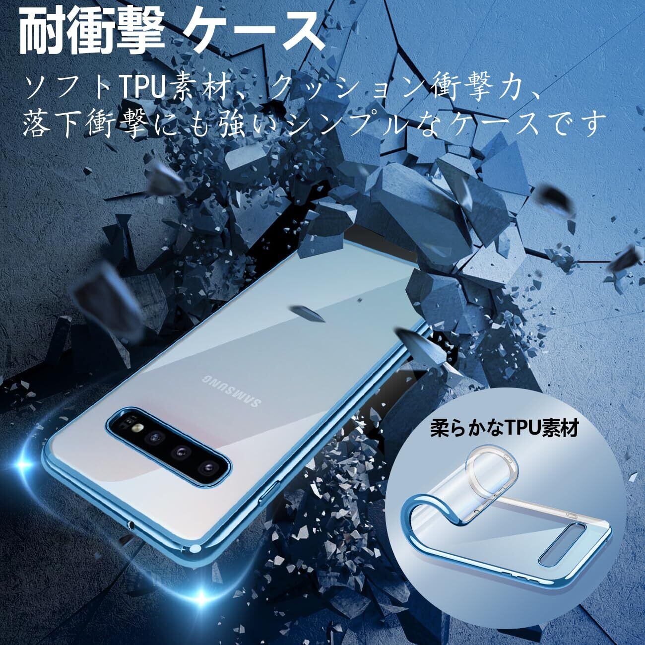 Galaxy S10 ケース クリア ギャラクシーS10 SC-03L SCV41 透明 スマホケース カバー 耐衝撃 薄型 ソフト TPU 黄変防止 青縁 背面クリア 保護カバー(ブルー)