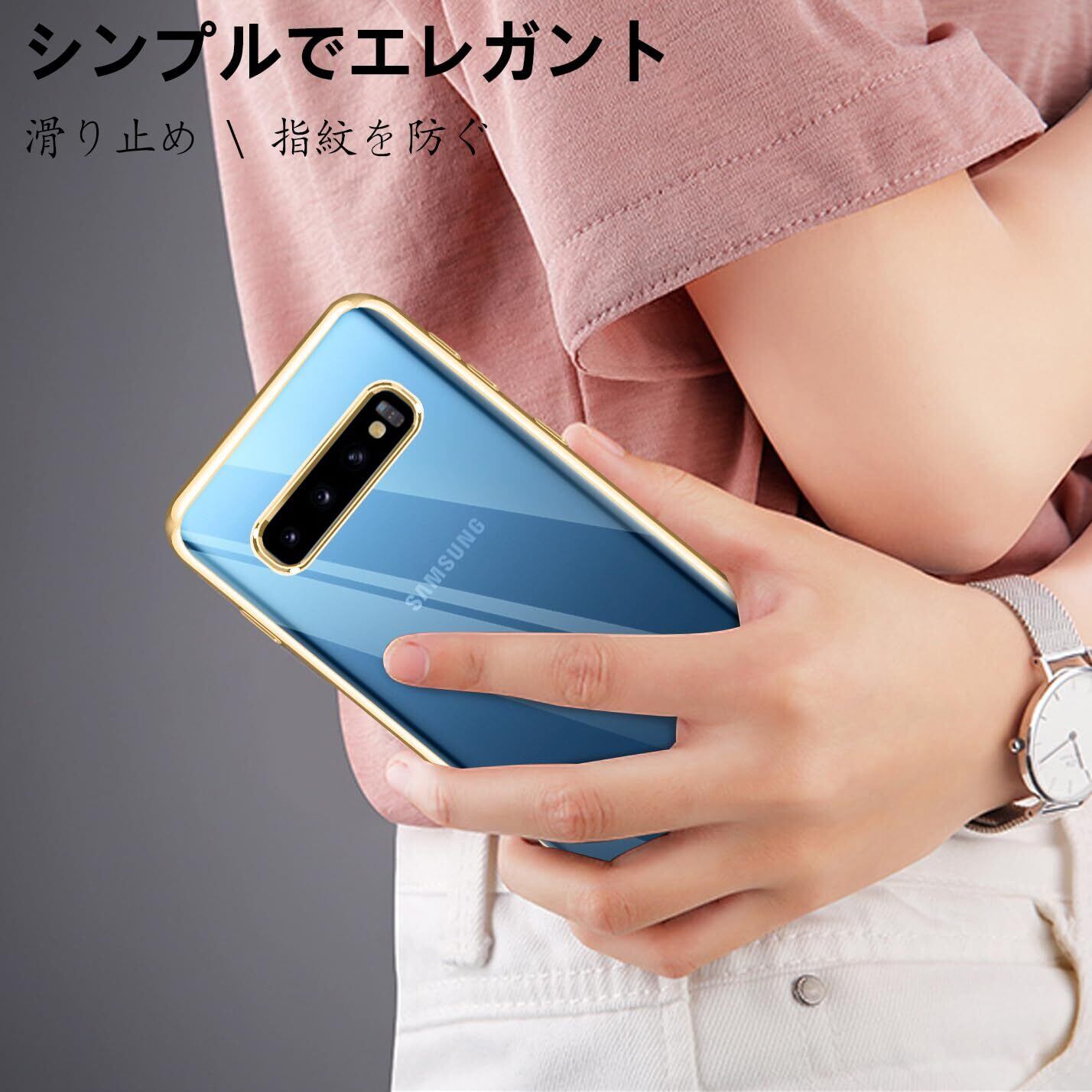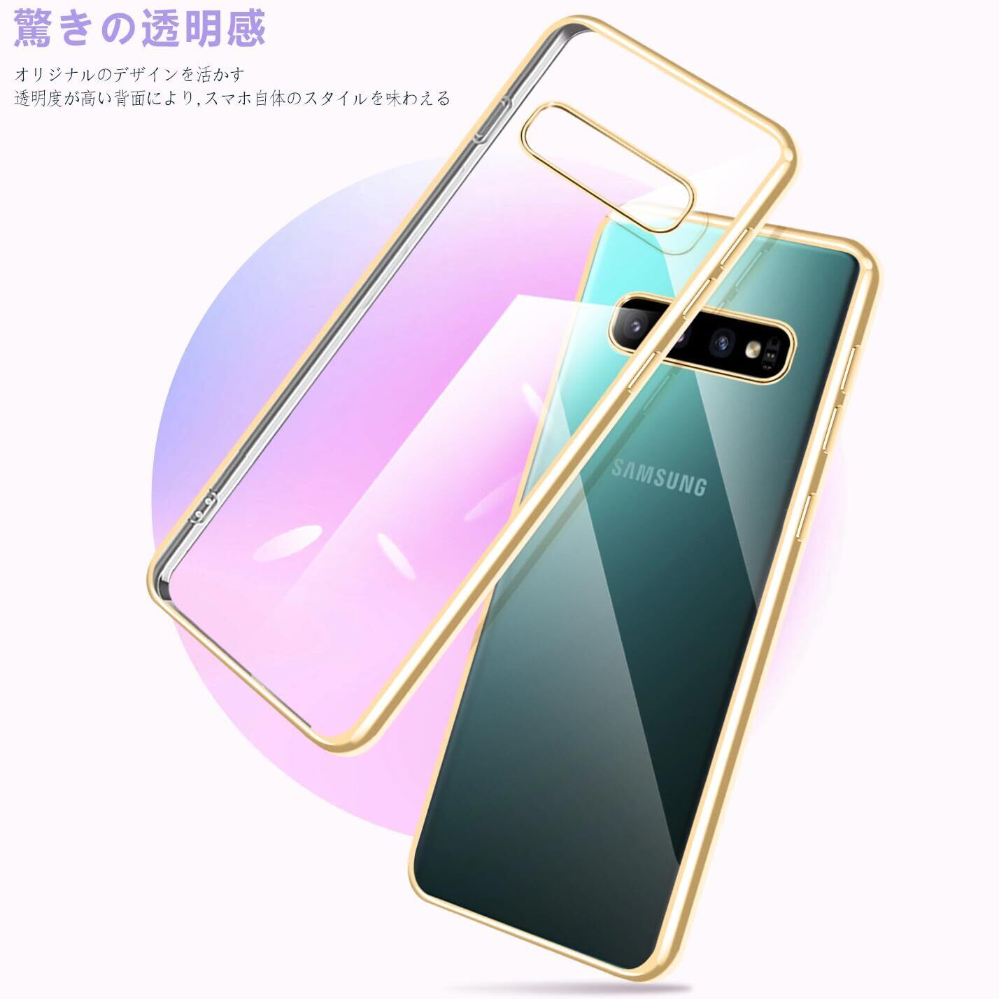 Galaxy S10 ケース クリア ギャラクシーS10 SC-03L SCV41 透明 スマホケース カバー 耐衝撃 薄型 ソフト TPU 黄変防止 背面クリア 保護カバー (ゴールド)