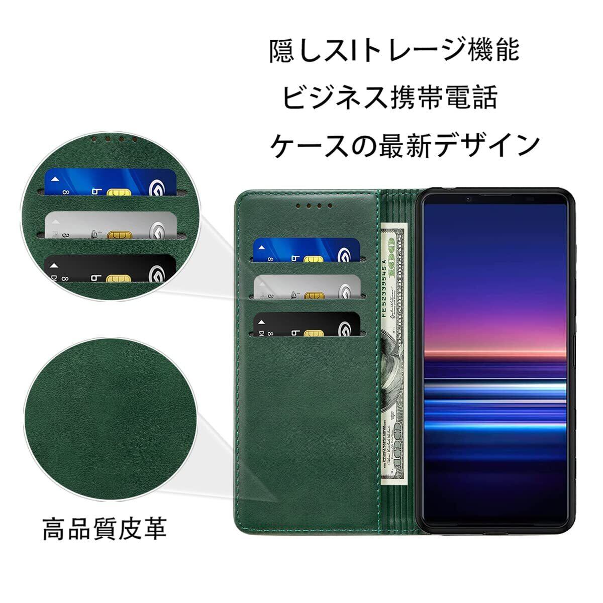 Xperia 5 IV ケース 手帳型 高質PUレザー ソニー エクスペリア5 IV ケース 耐衝撃 SO-54C カバー SOG09 ケース Sony Xperia 5 IV カバー 内蔵マグネット開閉式 ベルトなし Xperia 5 IV スマホケース おしゃれ カードポケット スタンド機能 便利 スプラット同梱 携帯ケース (グリーン)