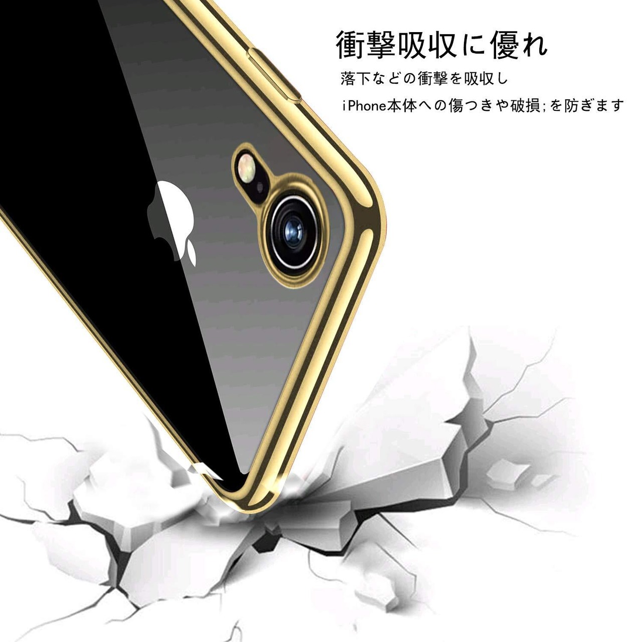 iPhone XR ケース クリア 透明 tpu シリコン メッキ加工 スリム 薄型 6.1インチ スマホケース 耐衝撃 黄変防止 一体型 人気 携帯カバー ゴールド