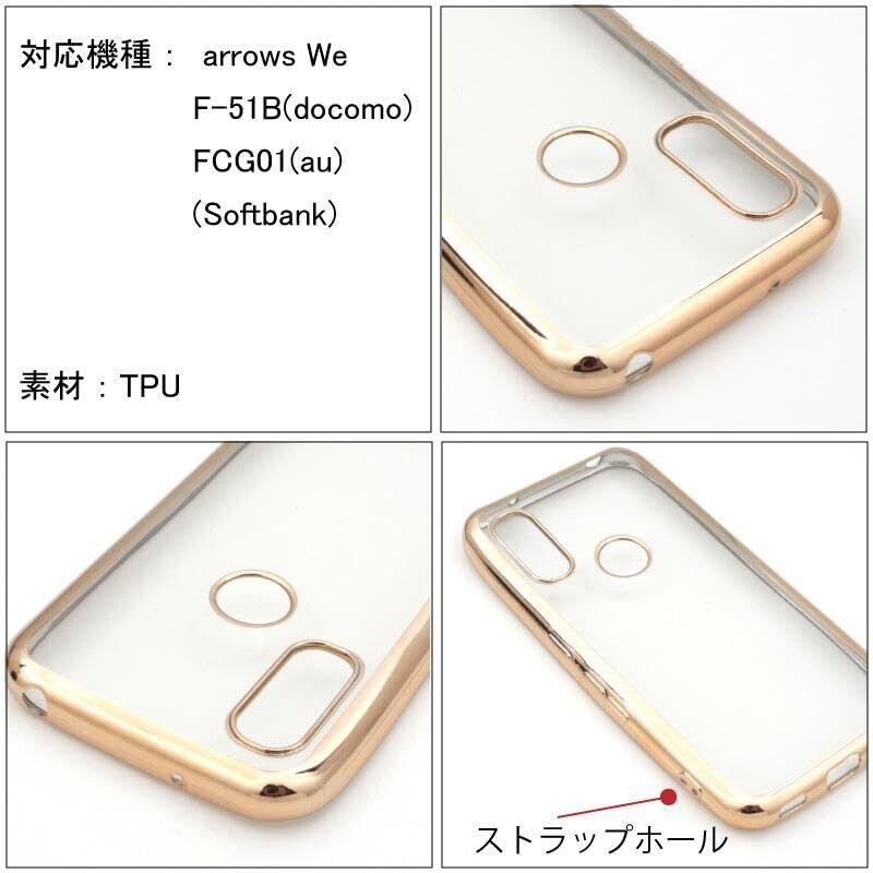 arrows We ケース クリア F-51B CG01 アローズwe カバー スマホケース 透明 耐衝撃 TPU 薄型 軽量 メッキ加工 ソフトケース ストラップホール付き 落下防止 擦り傷防止 レンズ保護 ゴールド