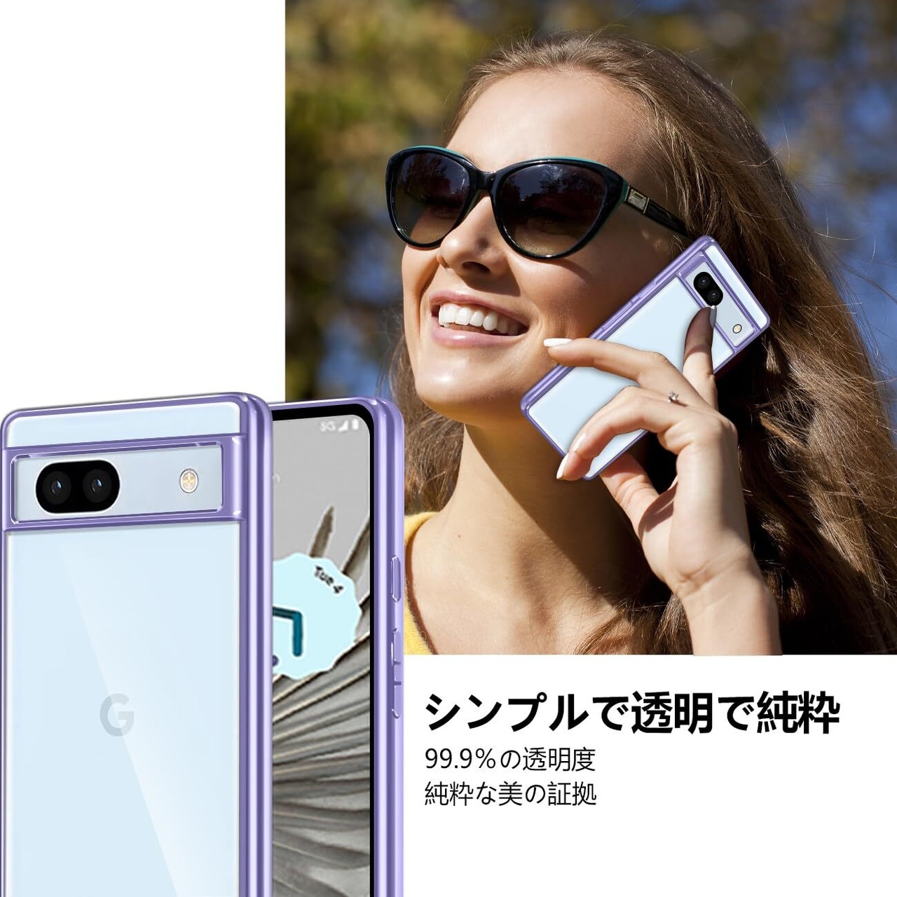 Google pixel 7A ケース クリア メッキ加工 耐衝撃 薄型 カバー グーグル ピクセル 7A 透明な背面 ケース 米軍MIL規格 SGS認証 TPU 透明な背面 スマホケース 韩国 人気 ランキング おしゃれ 衝撃吸収 ソフトケース 指紋防止 滑り止め 黄変防止 ストラップホール付き 携帯ケース pixel 7A case (パープル)