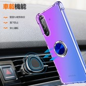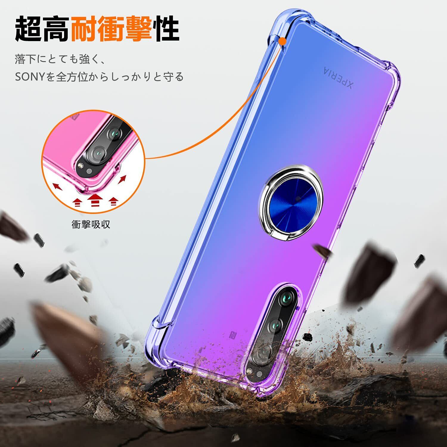 Xperia 1 ケース リング付き クリア TPU グラデーション色 SO-03L SOV40 ケース 耐衝撃 ソニー エクスペリア1 カバー 透明 車載ホルダー対応 一体型 落下防止 防塵 変形防止 全面保護 ソニー カバー 紫/ブルー W-CSZH-07-09