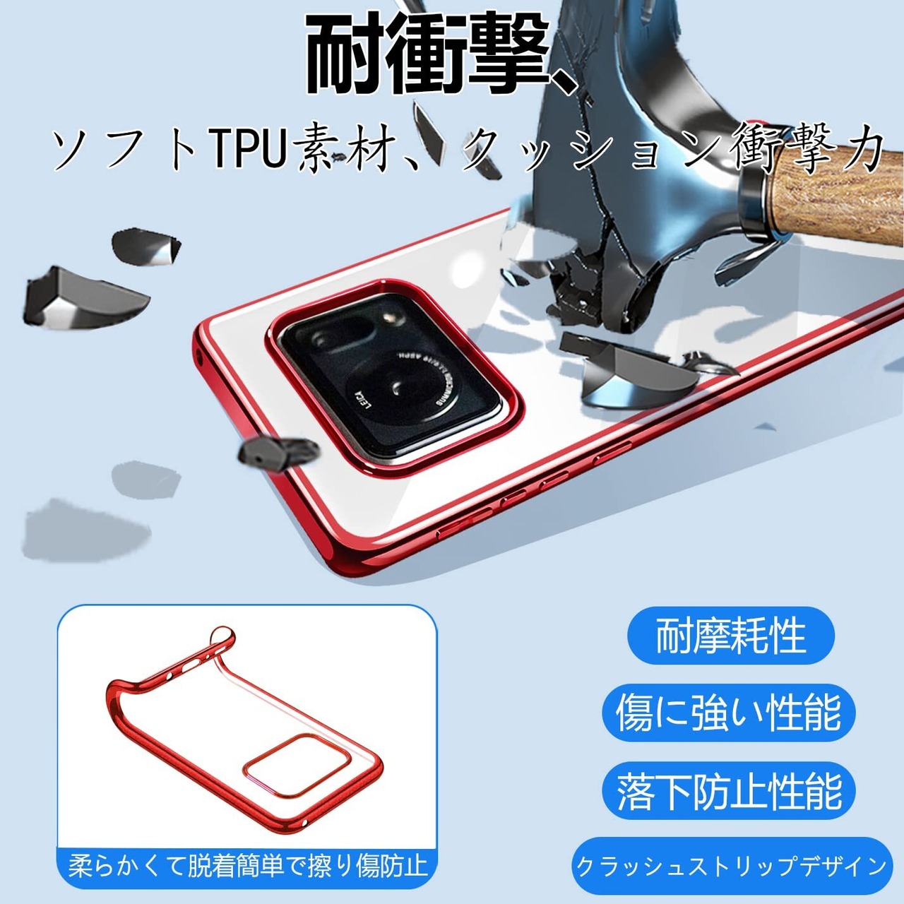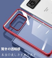 AQUOS R6 ケース SH-51B SH-M22 クリア 透明 ガバー スマホケース 耐衝撃 TPU 薄型 シリコン スリム 擦り傷防止 黄変防止 メッキ加工 ストラップホール付き(レッド)