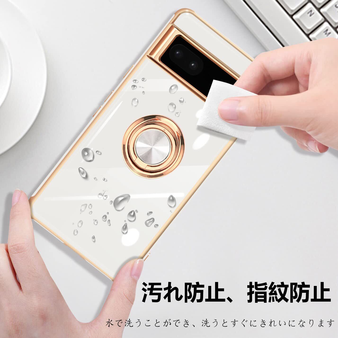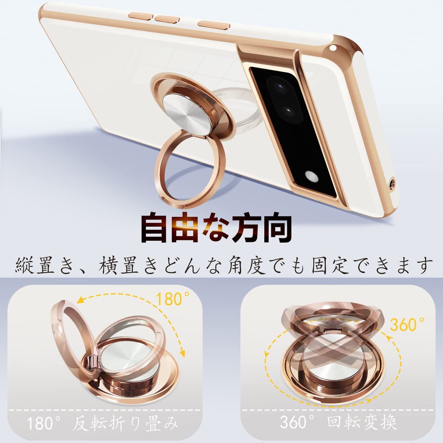 Google Pixel6A ケース リング付き グーグル ピクセル 6A リング カバー 耐衝撃 TPU メッキ加工 360°回転 スタンド機能 車載ホルダー ストラップホール付き(ホワイト)