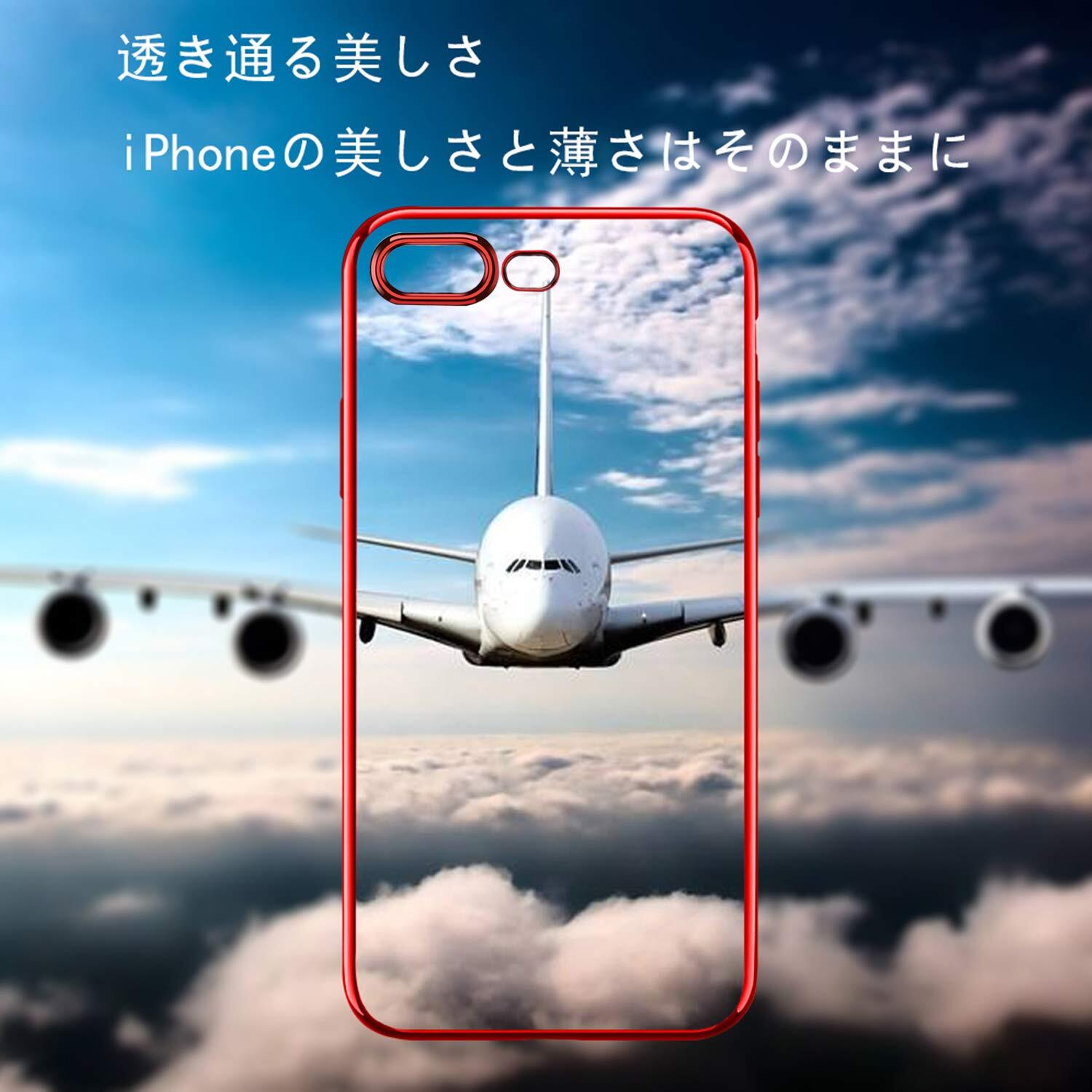 iPhone8Plus ケース iPhone7Plus ケースクリア 透明 tpu シリコン メッキ加工 スリム 薄型 5.5インチ スマホケース 耐衝撃 ストラップホール 黄変防止 一体型 人気 携帯カバー レッド