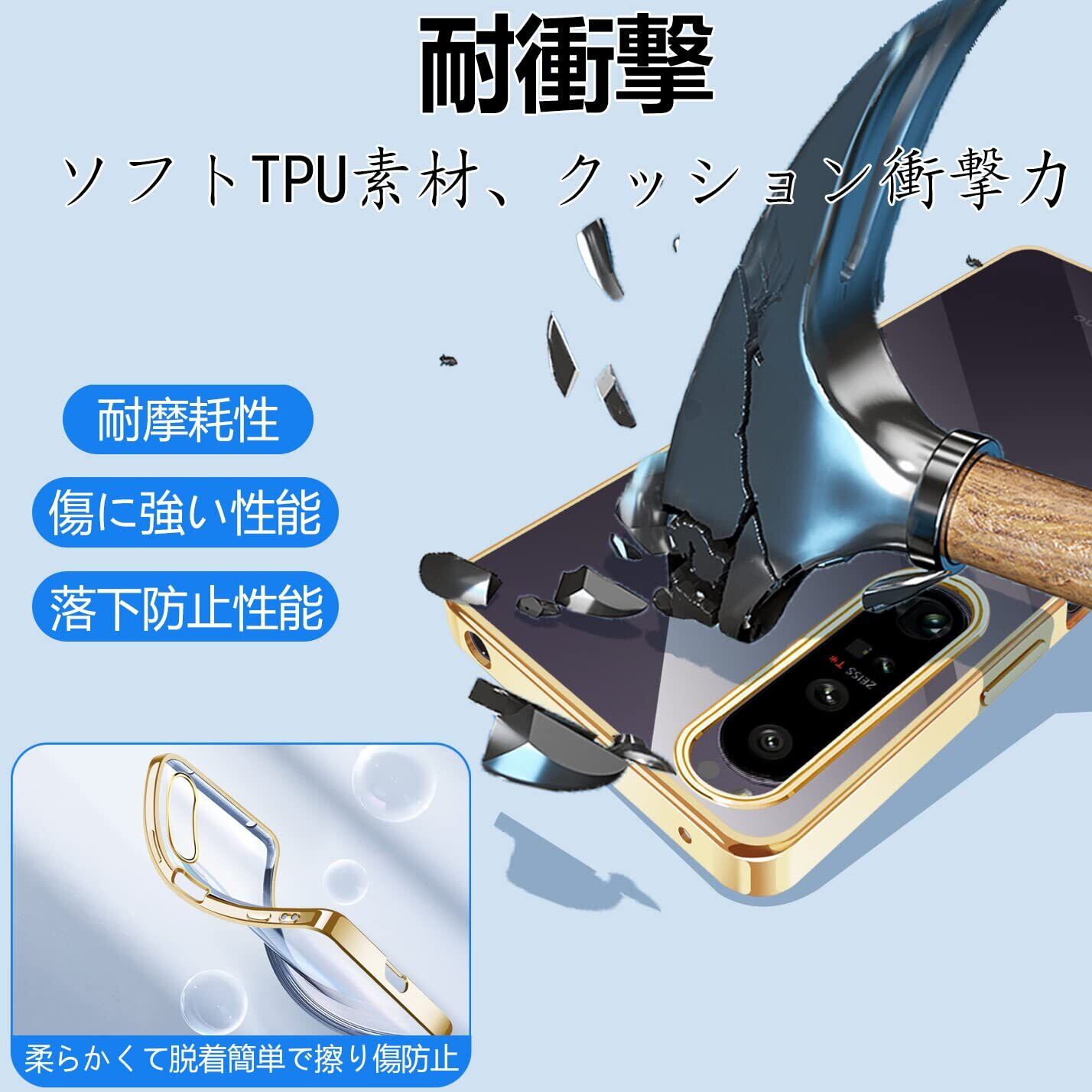 Sony Xperia 1 IV ケース クリア SO-51C SOG06 透明 ガバー エクスペリア1IV スマホケース 耐衝撃 TPU 薄型 スリム 擦り傷防止 黄変防止 メッキ加工 ストラップホール付き(ゴールド)