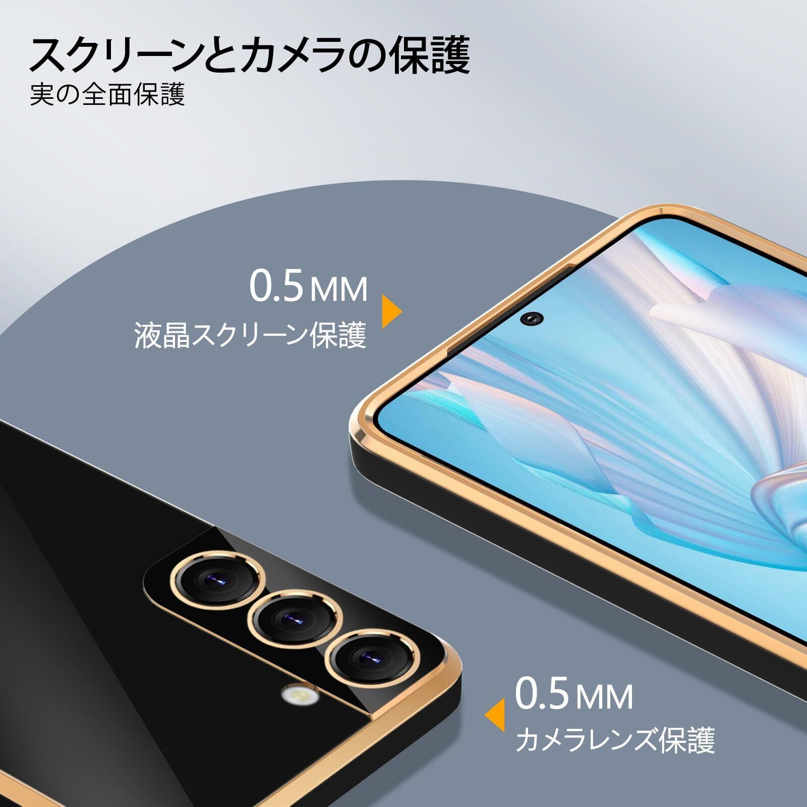 Galaxy A55 5G 用ケース 耐衝撃 SC-53E SCG27 カバー TPU 薄型 クリア 軽量 ワイヤレス充電対応 メッキ加工 ストラップホール付き ギャラクシーA55 用スマホケース 可愛い ソフト 黄変なし おしゃれ 耐久 人気 携帯ケース 黒 JMJP4-97