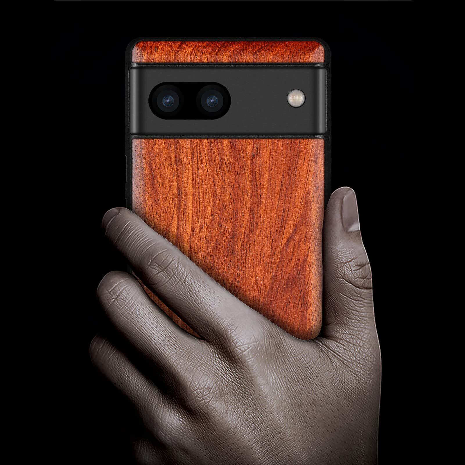 Carveit Google Pixel 8 木製 ケース [ソリッドウッド & ブラックソフト TPU] グーグルピクセル 8 ケース 耐衝撃 Google ピクセル8 カバー (バラ色-白木スタイル)