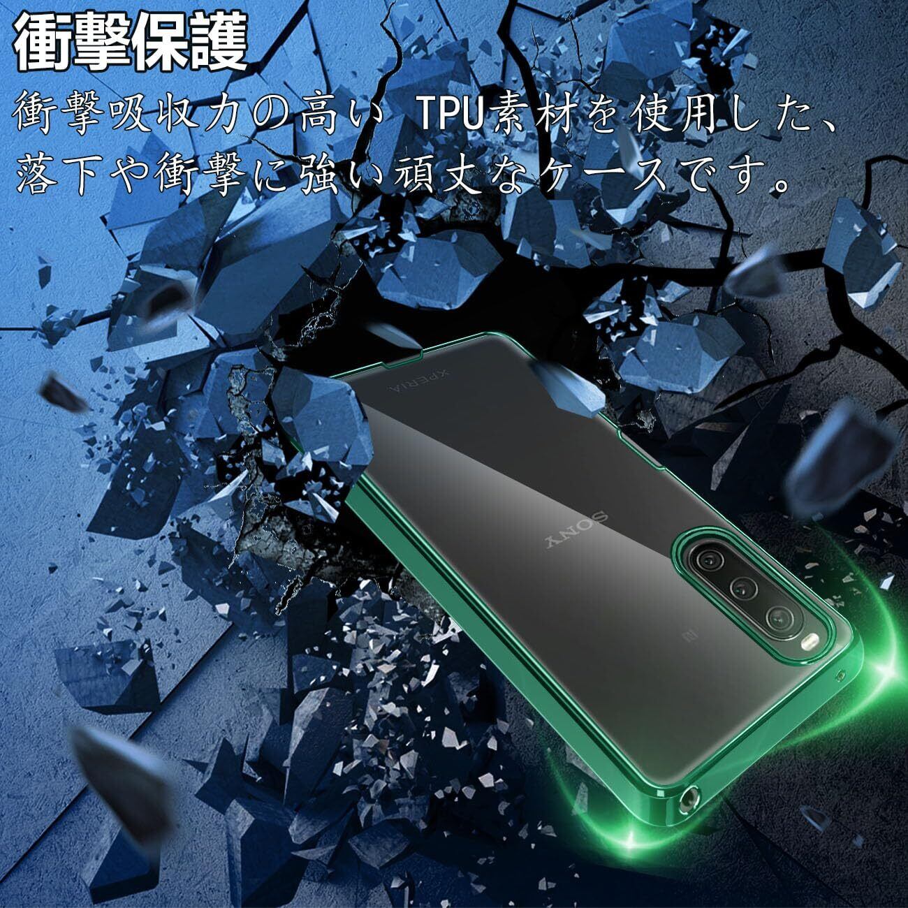 Sony Xperia 10 IV ケース クリア 耐衝撃 黄変防止 耐久性 SO-52C SOG07 カバー 透明 TPU素材 スマホケース 衝撃吸収 メッキ加工 ソフトケース 薄型 軽量 人気 ストラップホール付き ソニー エクスペリア 10 IV ケース 6.0インチ(ダークグリーン)