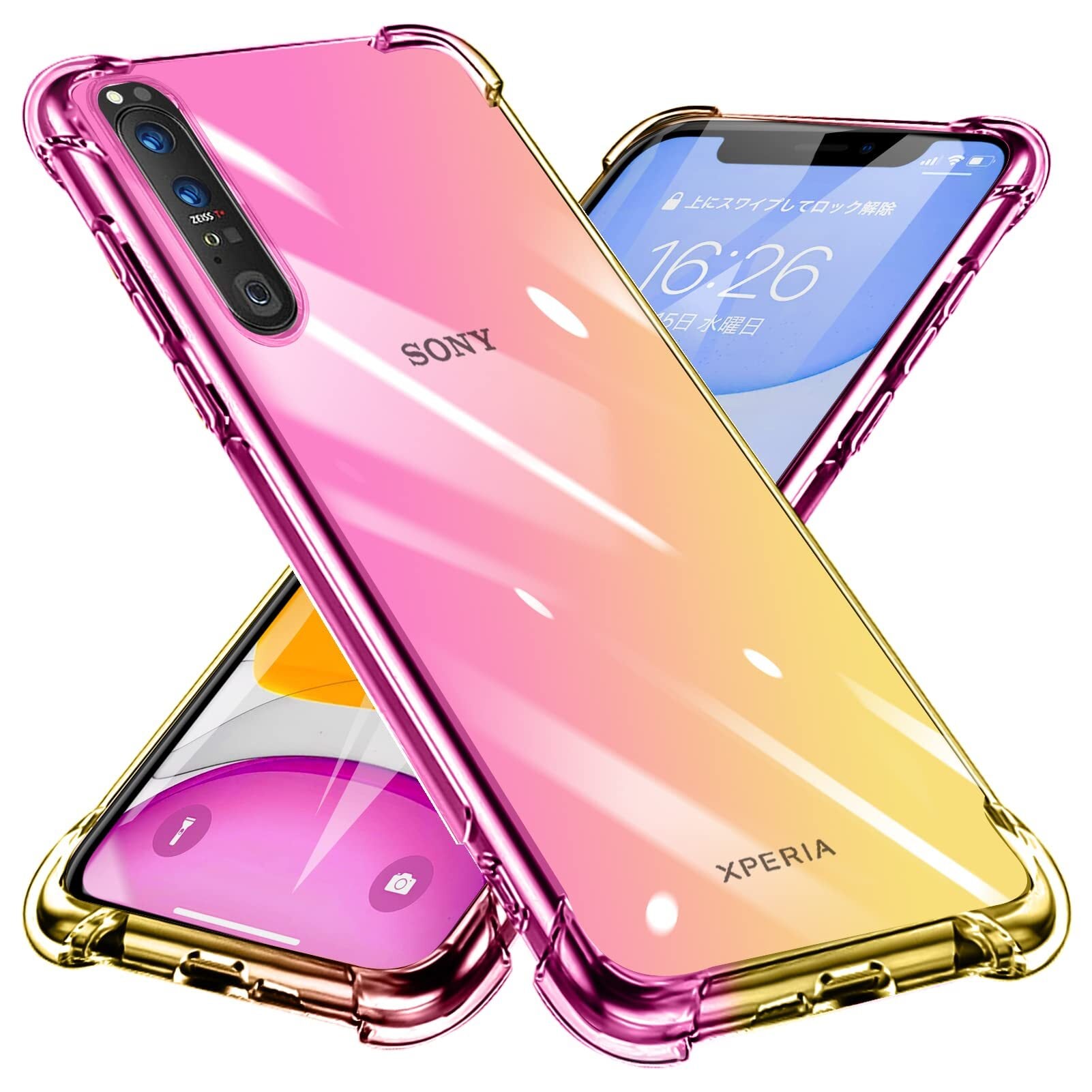 Xperia 1 II ケース クリア TPU グラデーション色 SO-51A SOG01 ケース 耐衝撃 ソニー エクスペリア 1 II カバー 透明 一体型 落下防止 防塵 変形防止 ソニー カバー ピンク/ゴールド W-CSZH-1-01