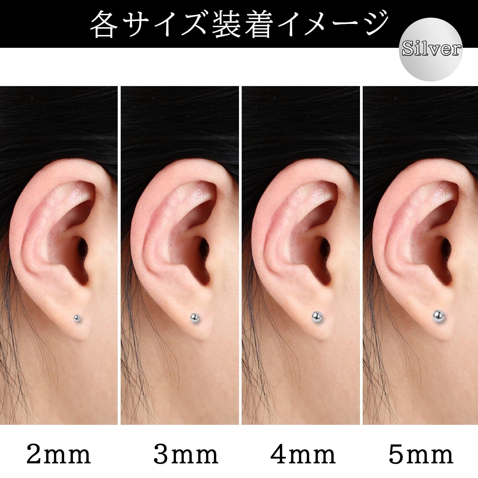 【シーン】人気の3サイズ、3mm、4mm、5mmご用意しております。小さすぎず、大きすぎないサイズなので日常 デート パーティー等、色々なファッションに合わせることができます。2個セットでの販売になります。