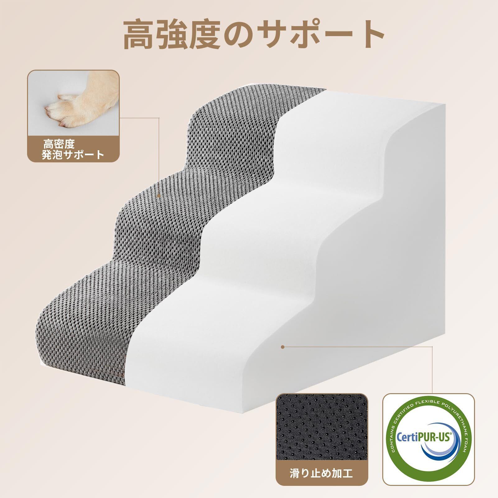 EHEYCIGA 犬 階段 ステップ ペット階段 ドッグステップ 犬 スロープ 高密度 滑り止め付き 安定性 カバー取り外し可能 洗える 小型犬適用 (3段,グレー)