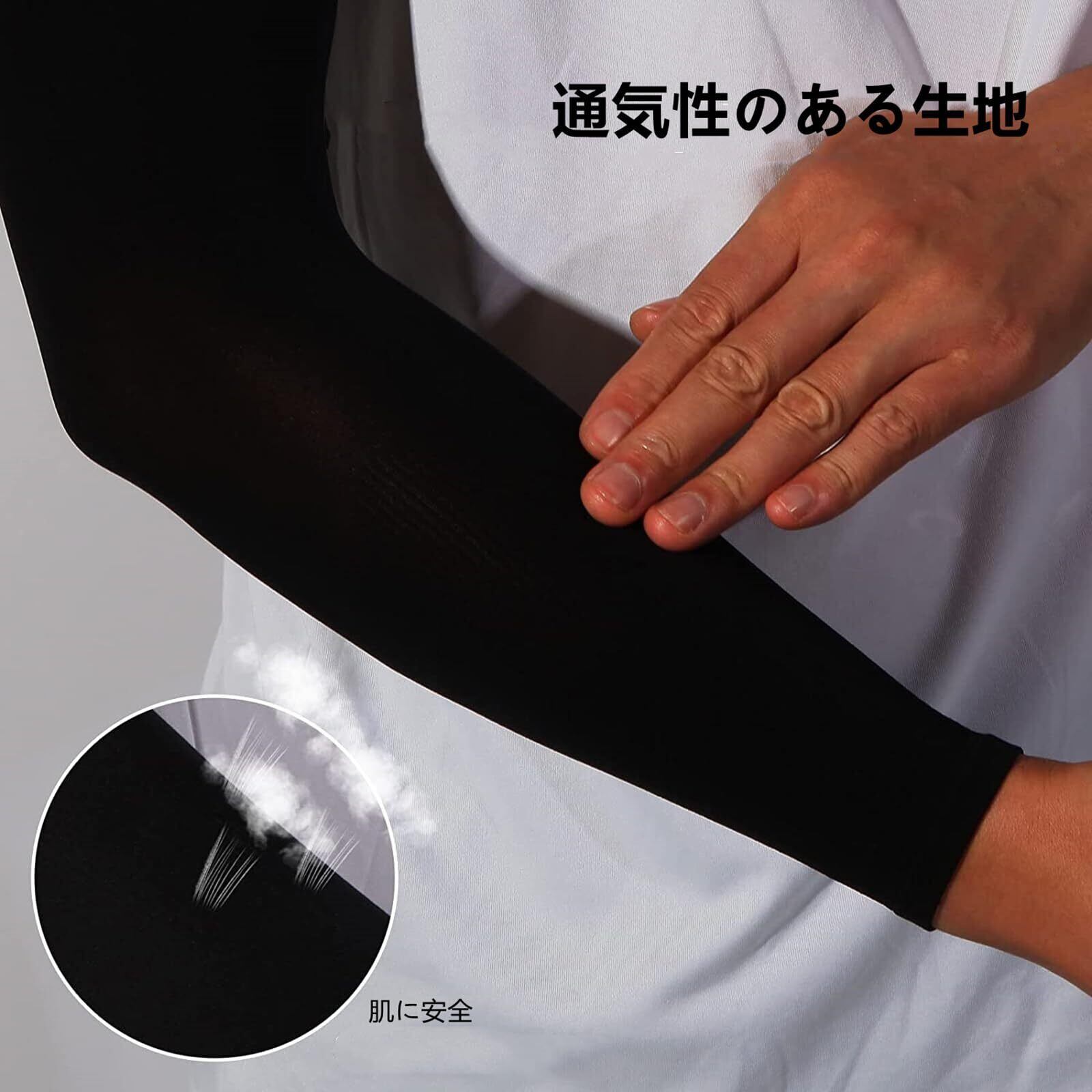 【スポーツ系イケメン冷感アームカバー】肌に優しい冷感材質を採用し、風が当たてひんやりとした着心地を体感できる。ストレッチ性が高いのでフィット感抜群、肘関節の曲げ伸ばしが楽になります!