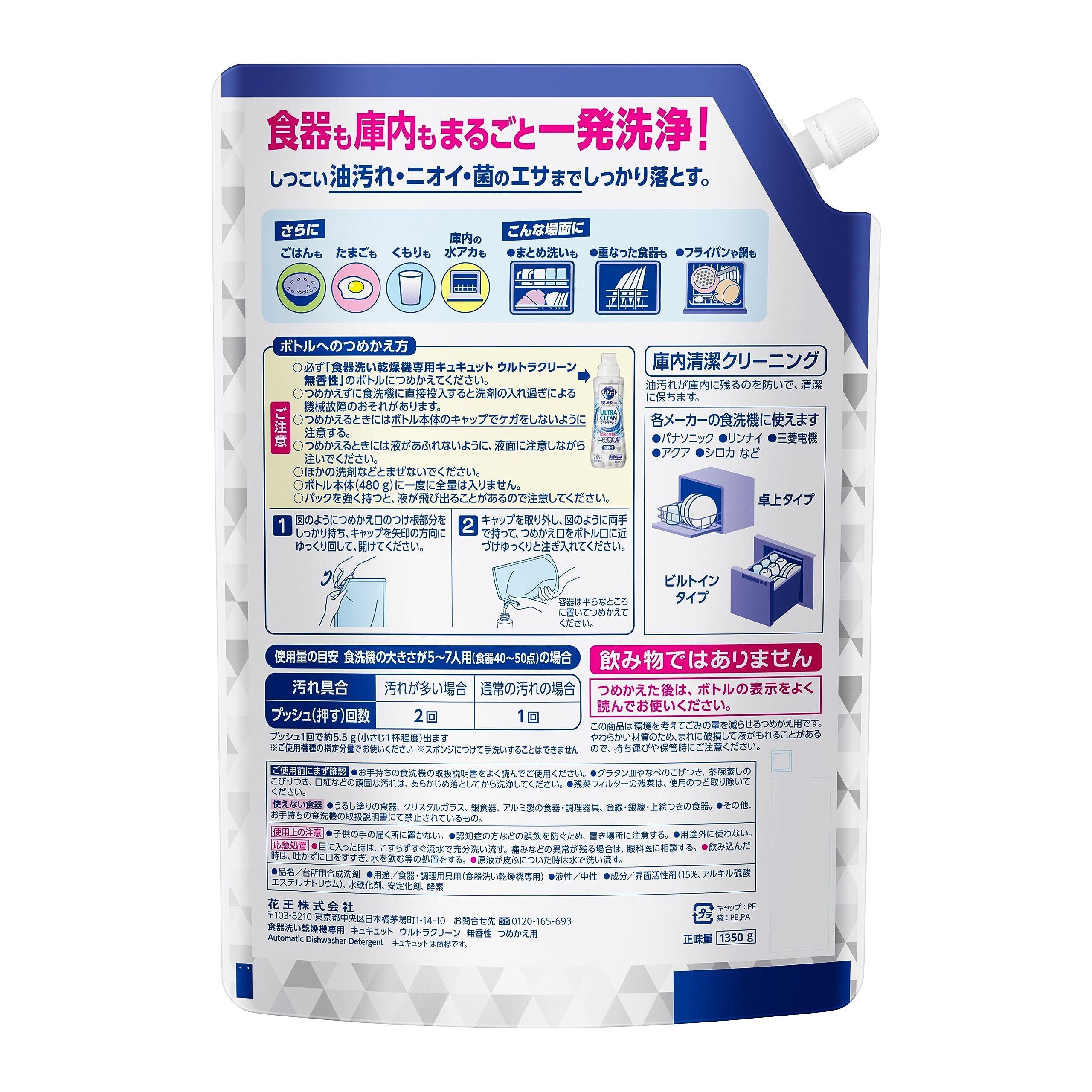 【大容量】キュキュット ウルトラクリーン デカラクサイズ 食器用洗剤 食洗機用 食器も庫内もまるごと強力洗浄 無香性 詰め替え 1350g