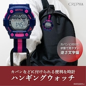 カラビナウォッチは、日常やアウトドアで、手の動きの妨げになってしまうようなシーンでも、リュックやベルトループなどに引っ掛けて使うことができる便利アイテムです。