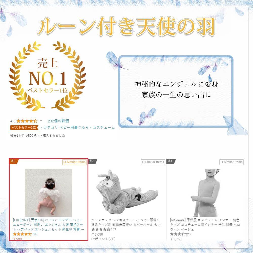 [LIKENNY] 天使の羽 ハーフバースデー ベビー ニューボーン 可愛い エンジェル 衣装 寝相アート ヘアバンド エンジェルセット 新生児 写真 小道具 舞台 撮影