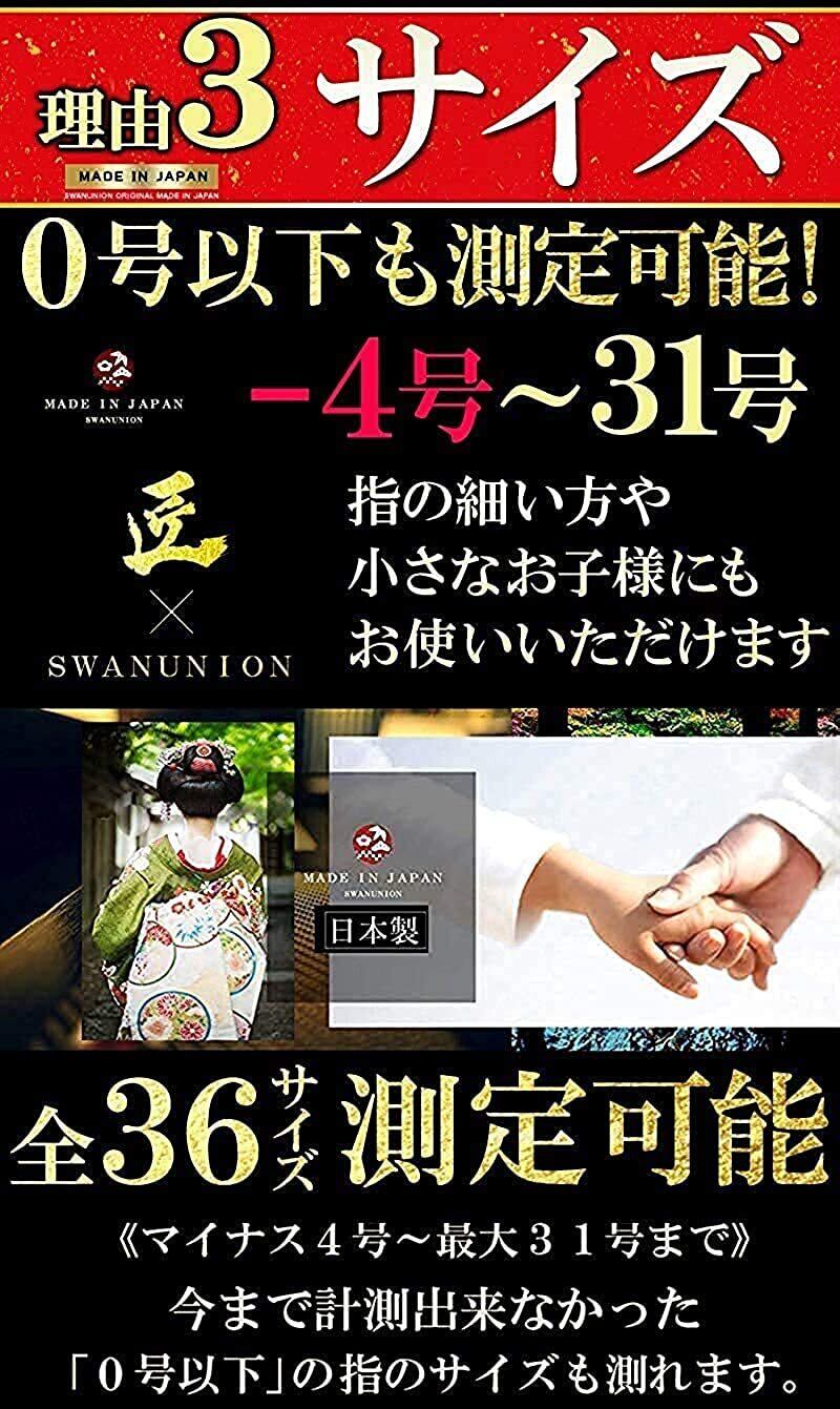 【日本製】完全フルサイズ仕様【全36サイズ計測可能】《マイナス4号~最大31号まで全号数測定可能》今まで計測出来なかった「0号以下」の指のサイズも測れます。【他社に無い0号以下のサイズ測定も可能】指の細い方や小さなお子様にもお使いいただけます。0号以下~-4号 まで対応。