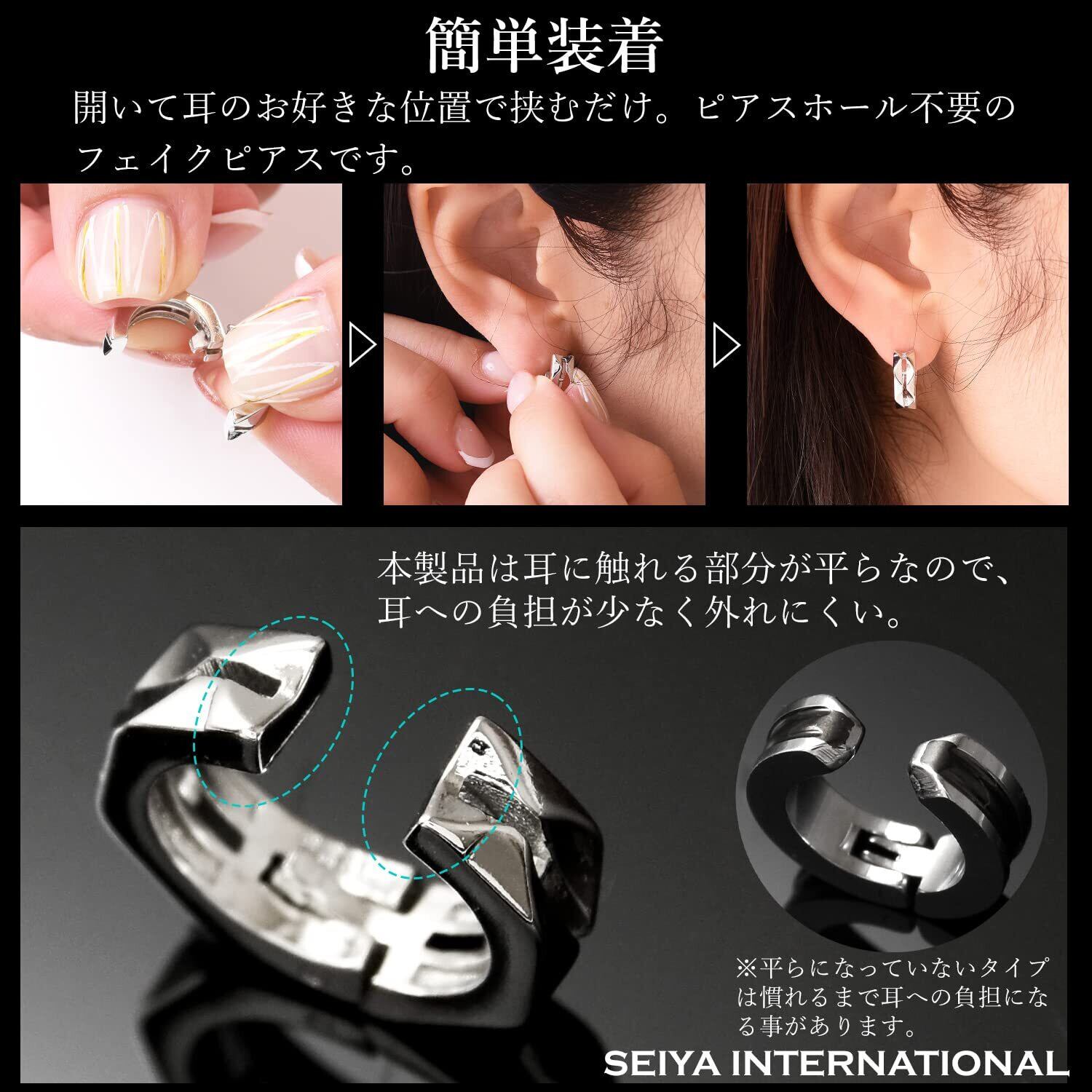 [SEIYA INTERNATIONAL] フェイクピアス メンズ イヤリング イヤーカフ フープイヤリング ダイヤカット 両耳 2個セット