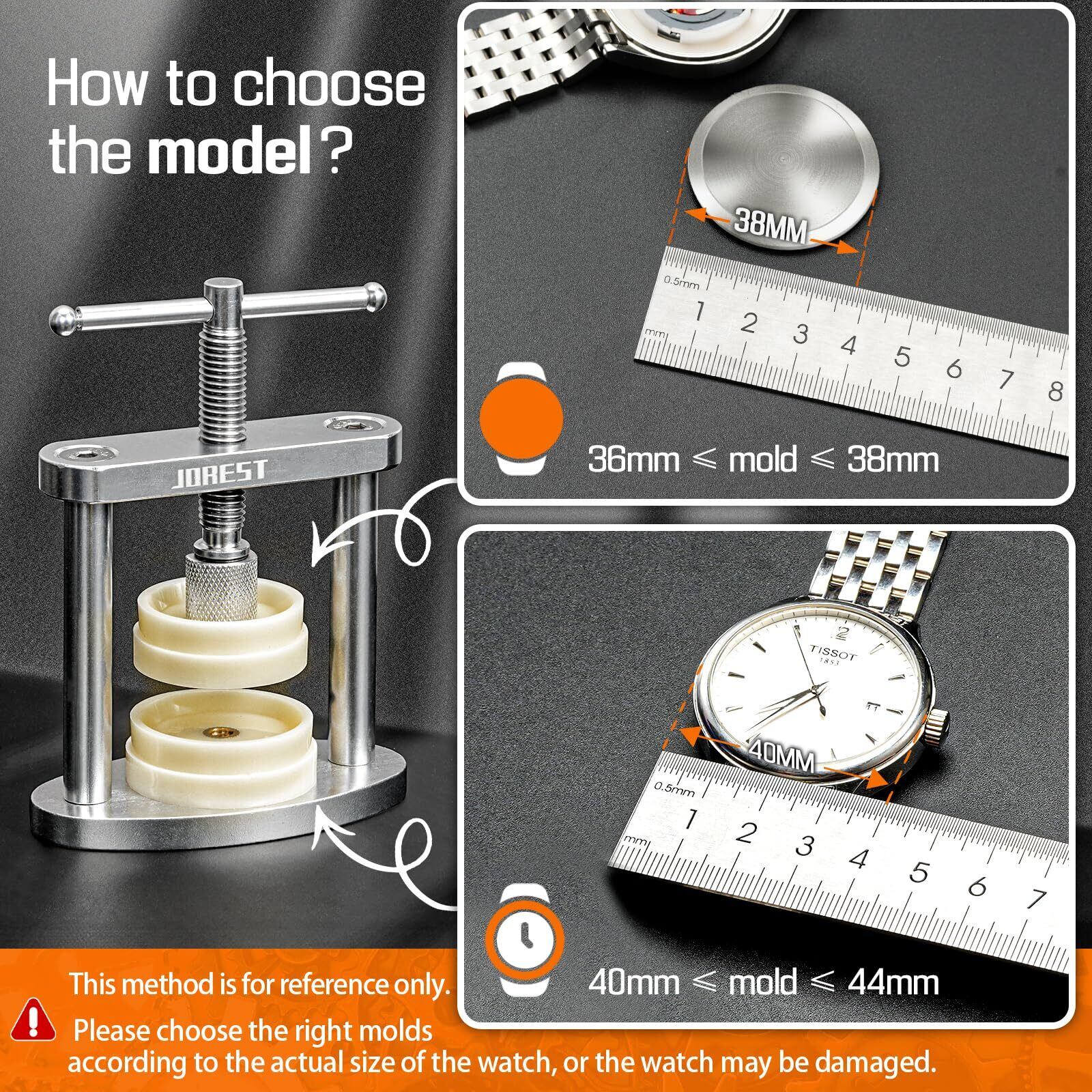 JOREST時計 裏蓋閉め器、腕時計用 プレスセット、時計 修理 電池交換、腕時計こじ開け工具、時計 裏蓋オープナー、裏 蓋 外し、取扱説明書(英語版)、丸型ダイヤル専用